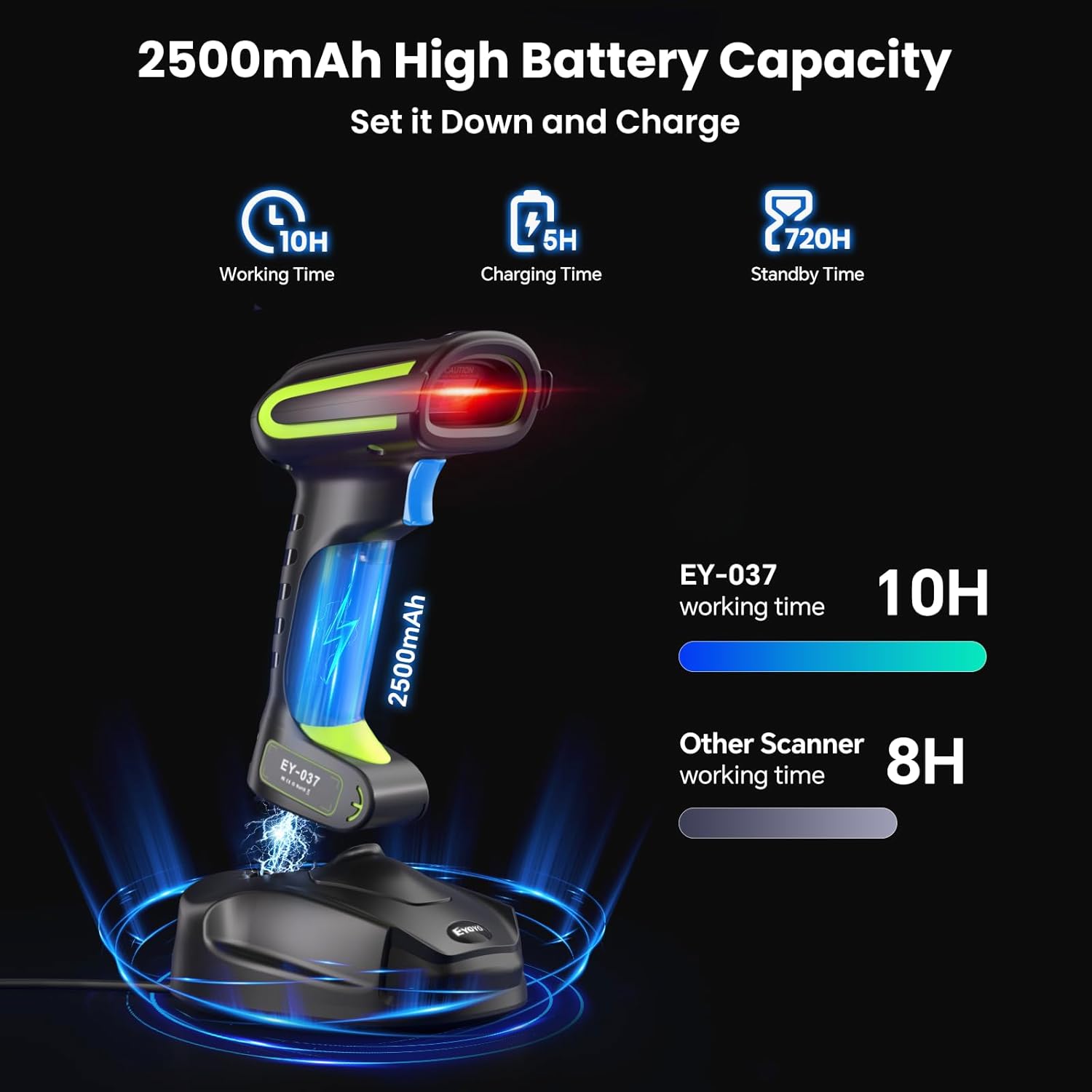- 3-in-1 Connections & Widely Compatible: Eyoyo wireless barcode scanner can connect via 2.4G wireless & 6.0 Bluetooth & USB wired. It can be connected to a variety of devices, such as smartphones, computers, POS, iPhones, ipads, and laptops. In addition, it is also compatible with various operating systems, such as Windows 7/8/10/XP, Mac OS, iOS, android, and Linux. Note: There is no need for a wireless dongle, the dock connects to the device and enables wireless connection