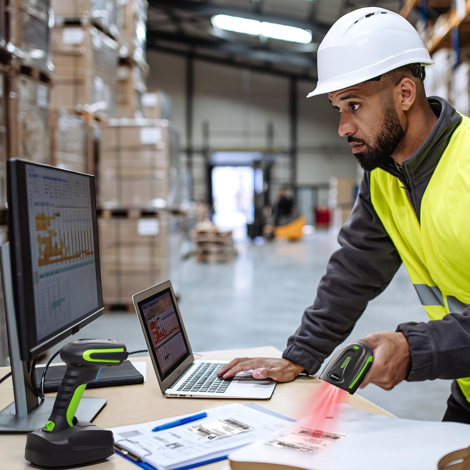 - Industrial Class Robustness and Durability: The Eyoyo EY-037 industrial barcode scanner is designed for the toughest environments, including warehouses and manufacturing floors. Withstanding up to 100 drops from 3 m (10 ft), 7,000 tumbles from 1 m (3.3 ft), and IP65 sealing, it ensures long-term durability and reliability. These rugged features minimize service costs and maximize device uptime, making it an ideal solution for demanding tasks in challenging conditions