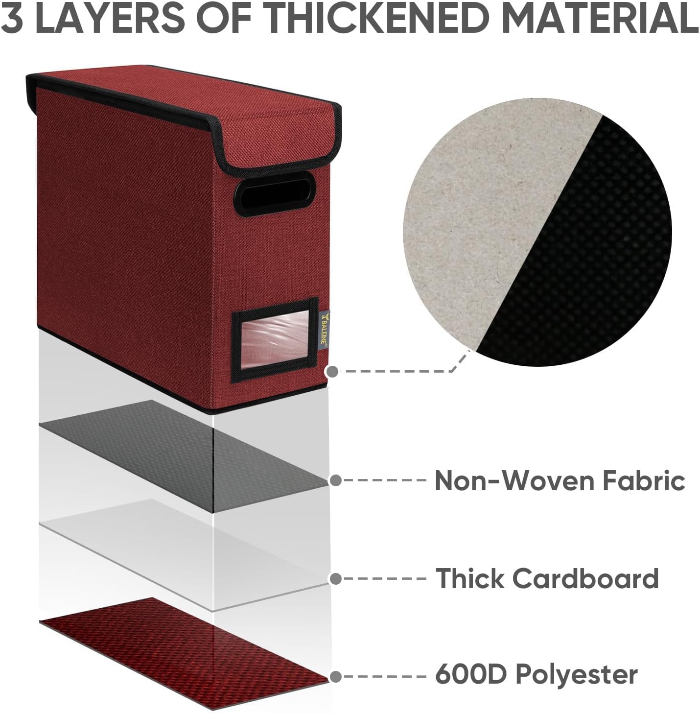 - [DURABLE MATERIAL] The outer layer of our filing box is crafted from high-quality polyester fabric and reinforced with thick cardboard in the middle. This construction ensures that the box maintains its shape and provides better bearing capacity for important documents and files. Its textured appearance can also serve as a stylish decorative element in any office or home