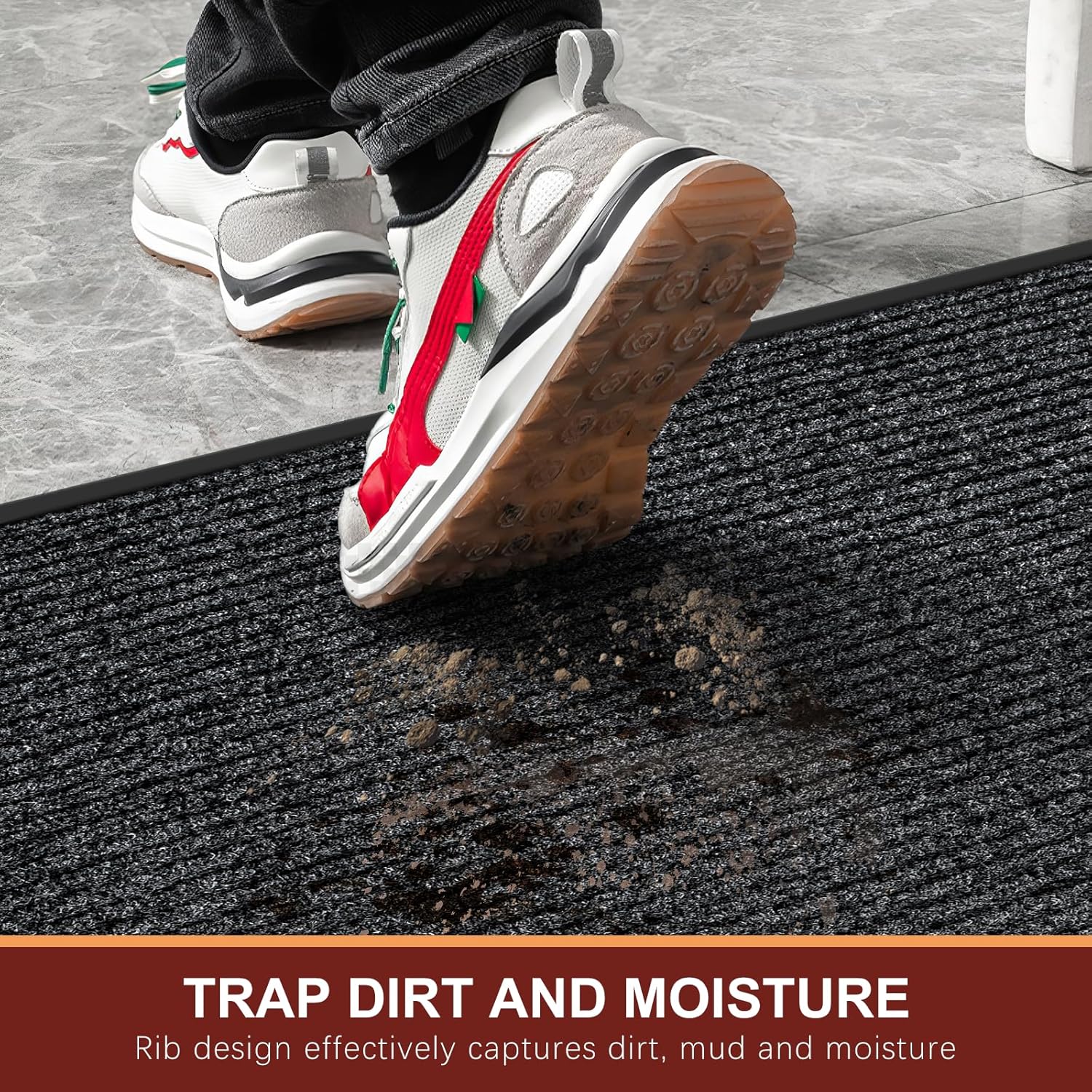 - [Absorbs Dirt an Moisture]:A high-low surface rib design effectively captures dirt, mud and moisture in the the recessed channels below shoe level to keep grime and water outside. Even rainy, snowy weather, it will keep your home dry and clean.