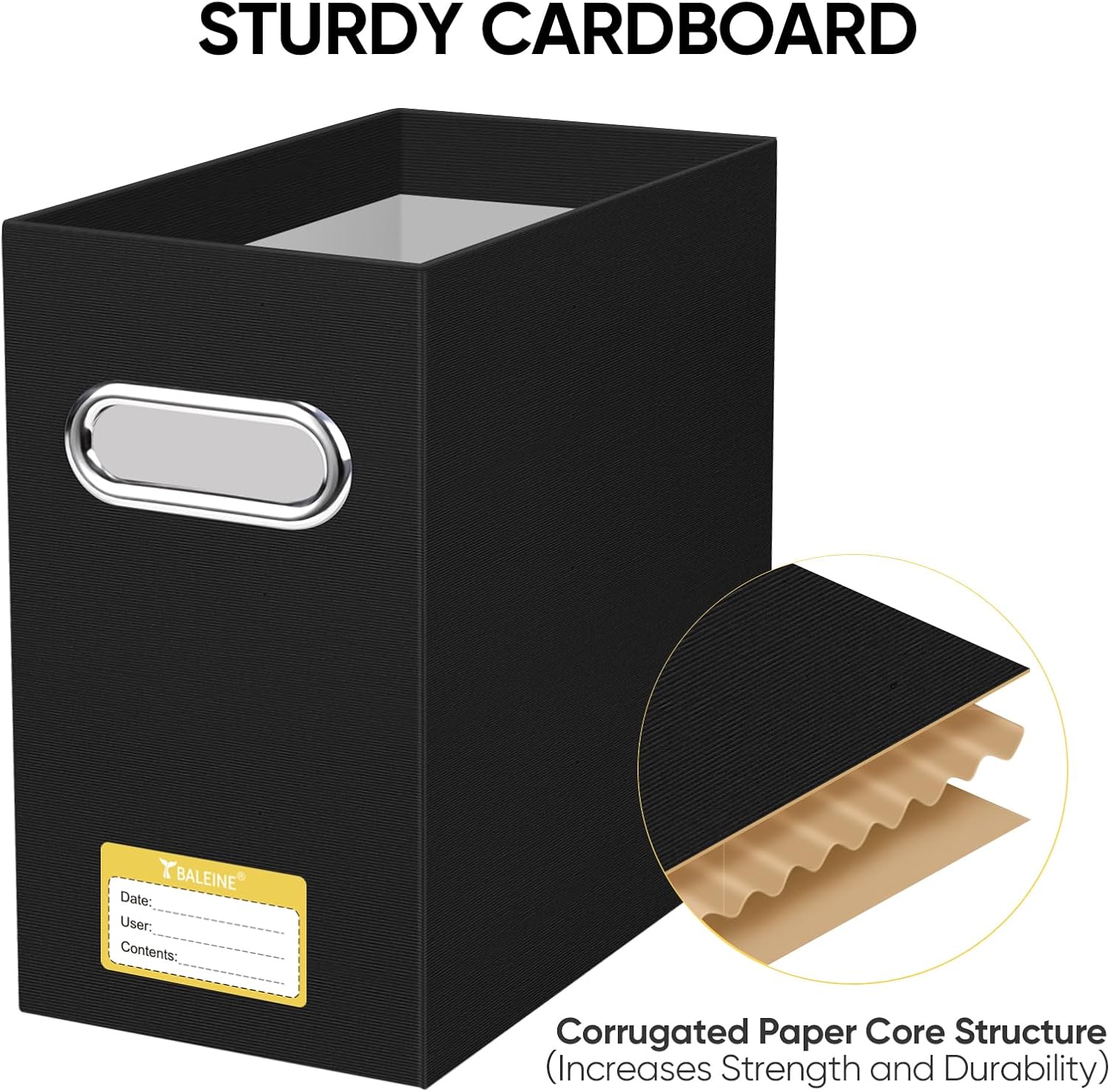 - UNIVERSAL SIZE: BALEINE File box with handles is suitable for letter size files; Designed for efficiency and functionality, itβs ideal for storing and organizing your paper documents, notebooks, and magazines (NOTE: Folders not included)