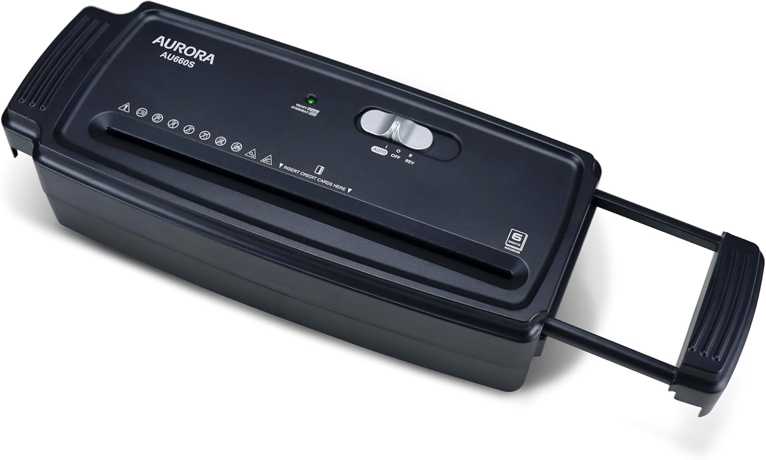Aurora AU660S 6-Sheet Strip Cut Paper/Credit Card Shredder Without Wastebasket, Portable with Extendable Arm, Black