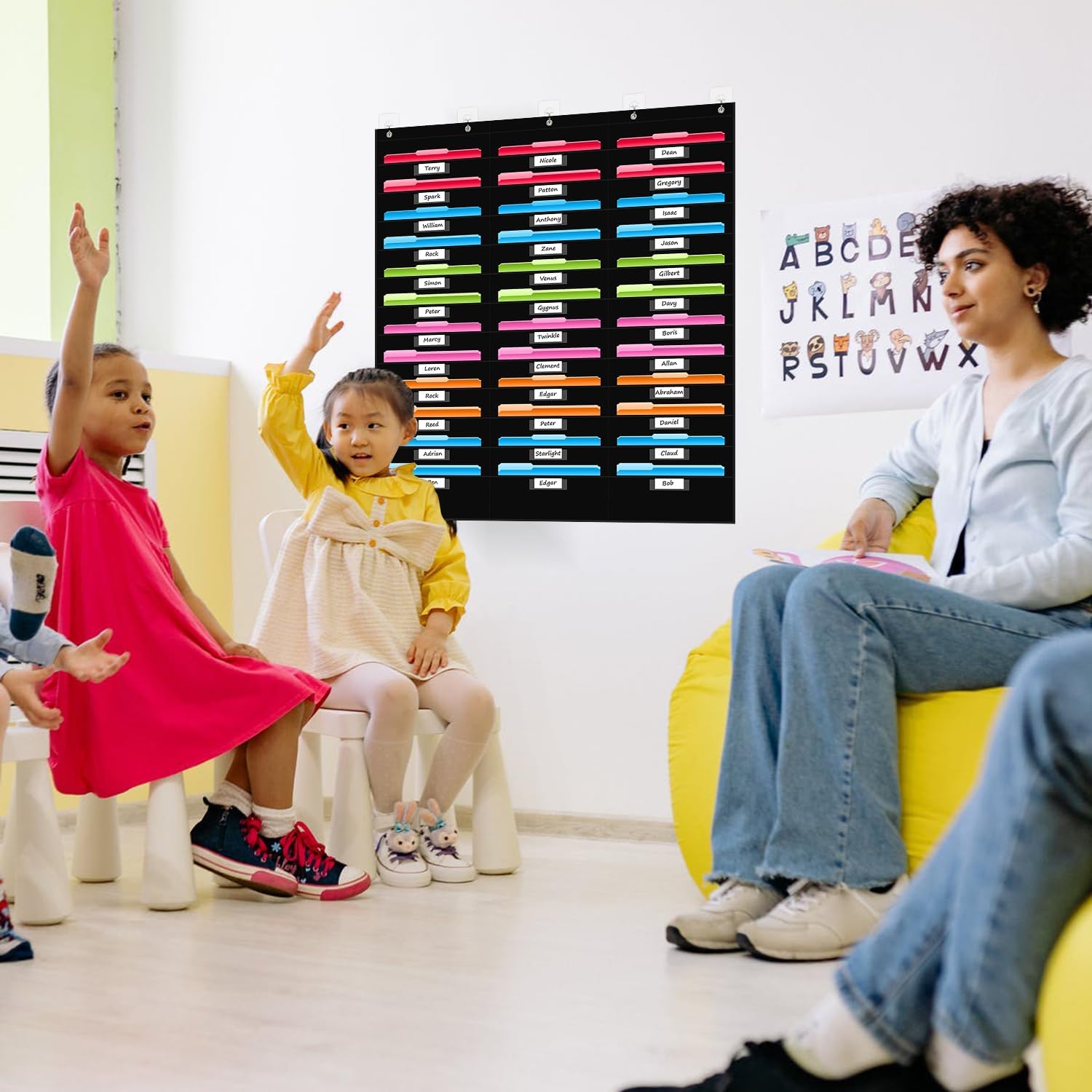 - ✿【Hanging it Anywhere】 5 adjustable door hooks for each file pocket charts for classroom, it is easy to hang over the door and fit most common household doors,ideal for classroom, dormitory, office, business or home. clean and classic design that looks good anywhere.