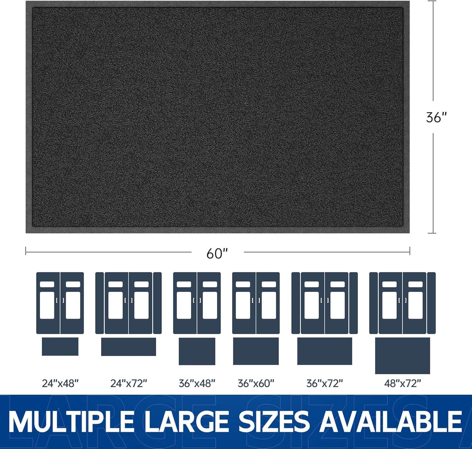 Sturdy Front Door Mat, 60" x 36" Heavy Duty Indoor Outdoor Doormat for Entryway, Fade Resistant, Waterproof Low Profile Entry Mat, Non Slip Welcome Mat for Outside Entrance, Patio, Home