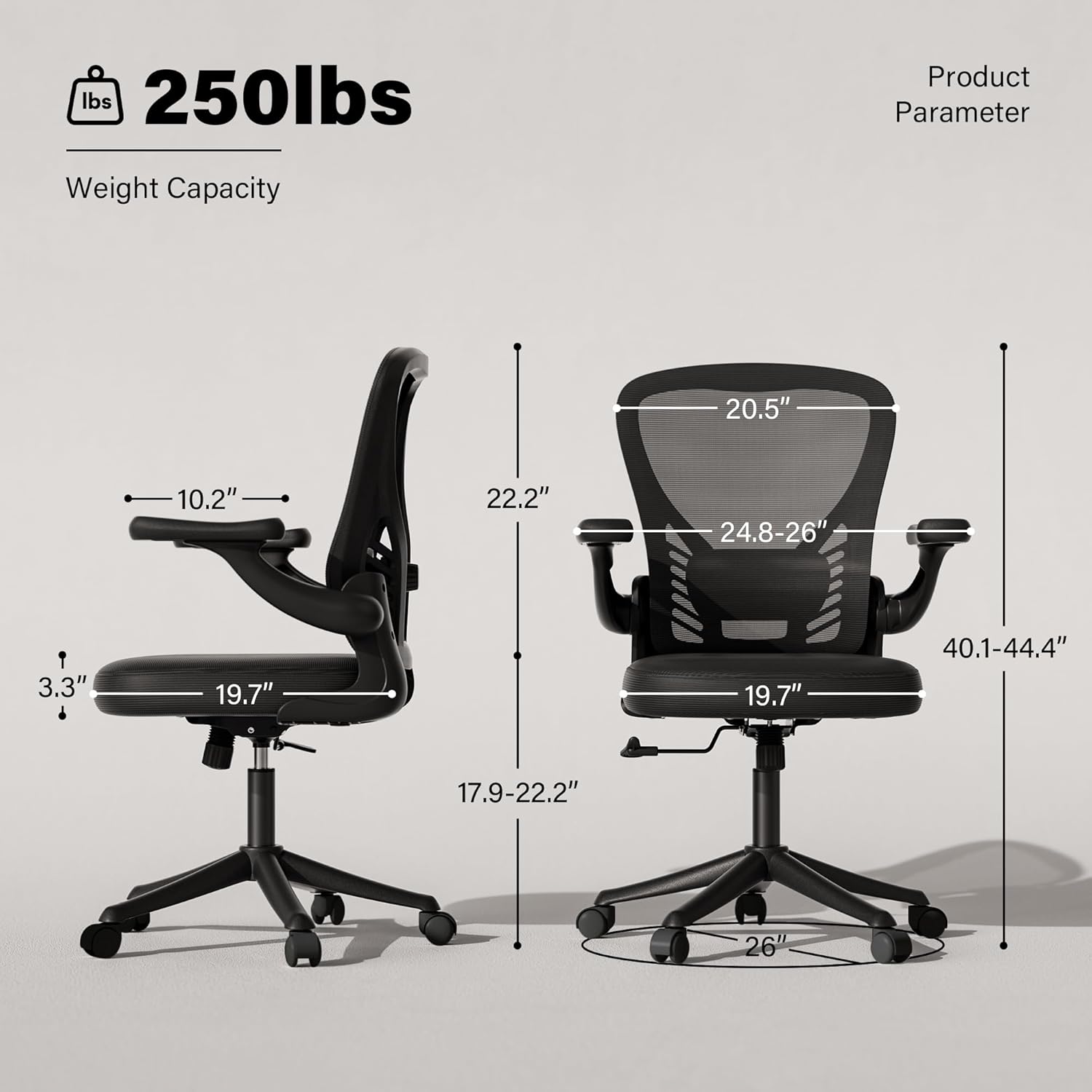 - Breathable Mesh Back: Keep cool throughout your workday with our mesh desk chair; its breathable back ensures optimal airflow, preventing heat build up