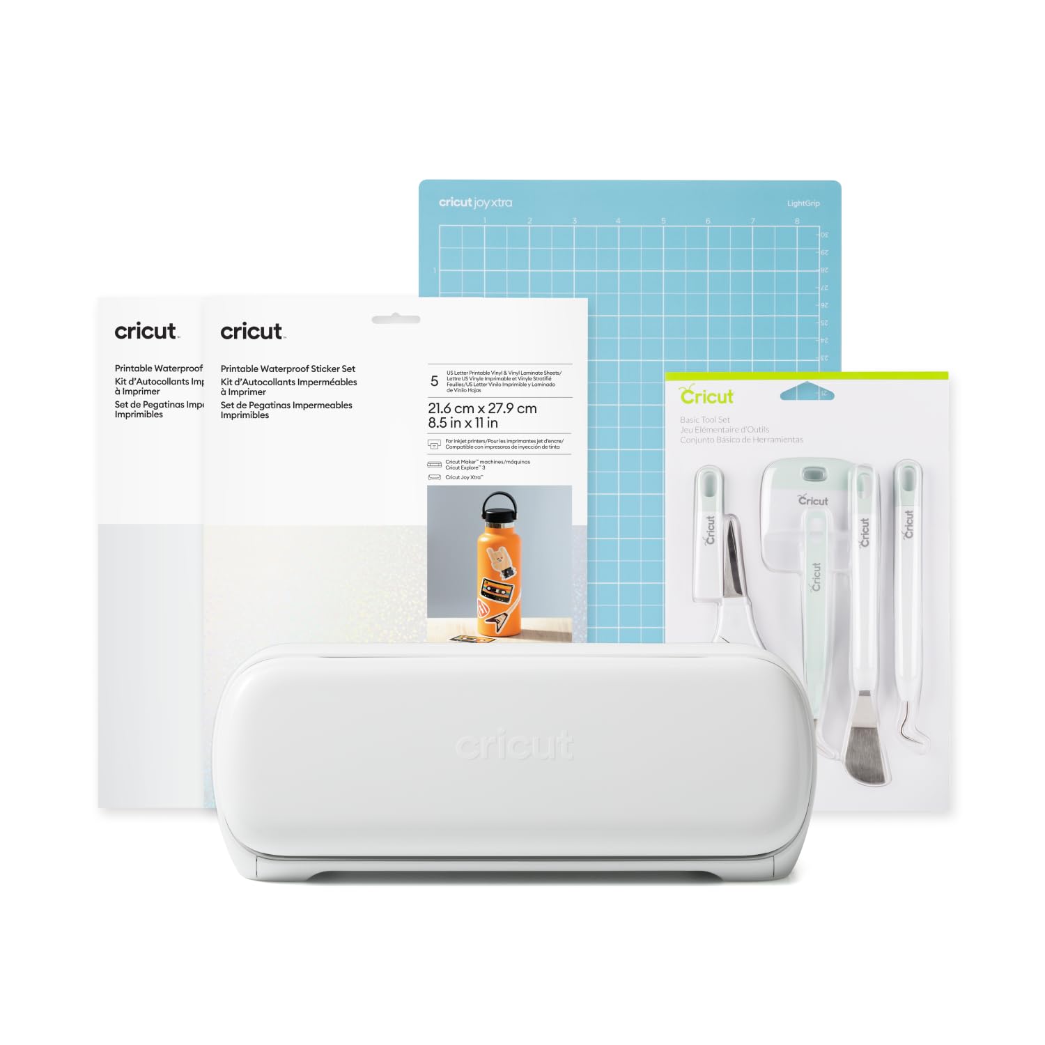 - BUNDLE INCLUDES - Cricut Joy Xtra Smart Cutting Machine, Light Grip Machine Mat, 2 Printable Waterproof Sticker Sets, 6 Letter Sheets Each (1 Holographic Transparent, 1 White), & 5-Piece Tool Kit