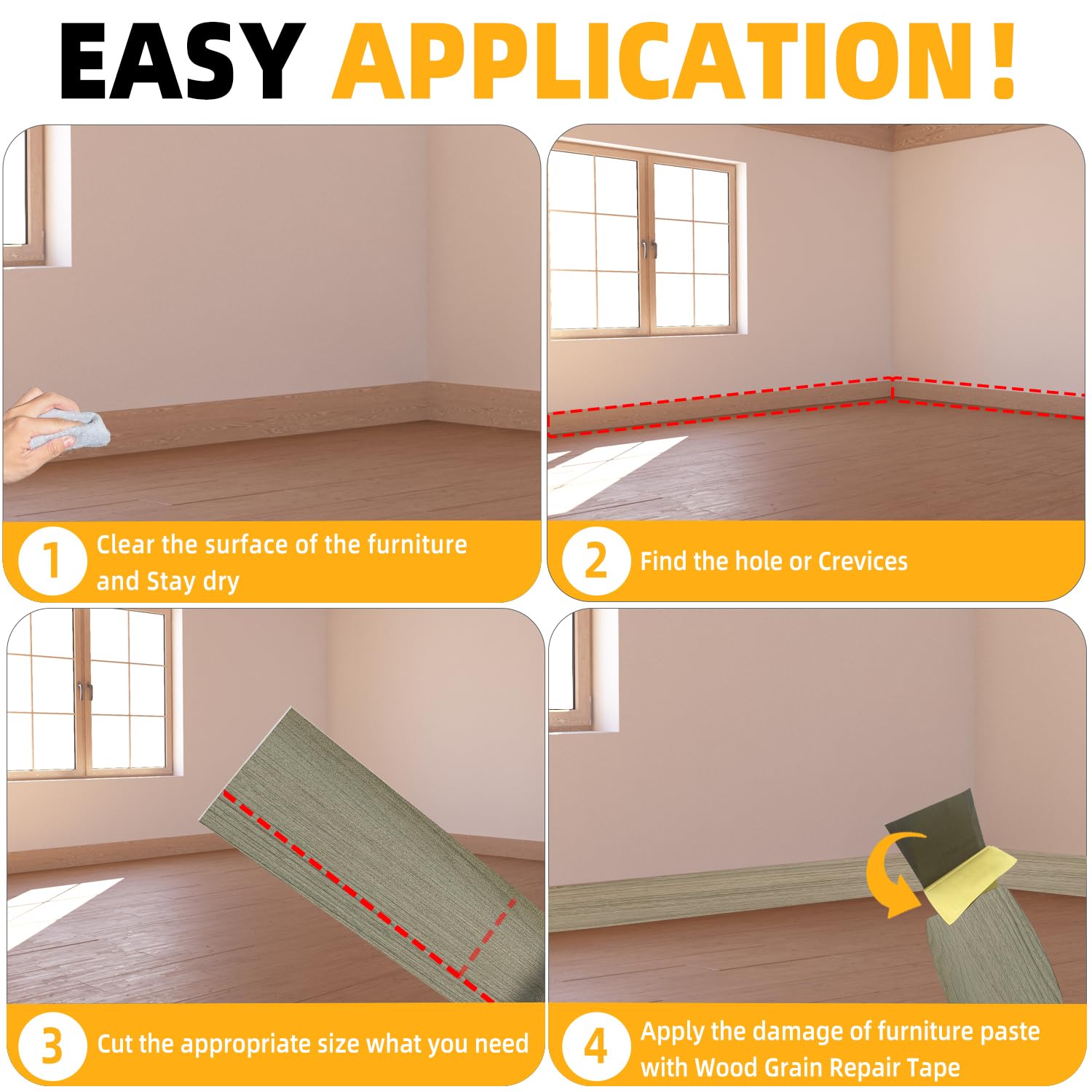 - ¡̡¾HIGH QUALITY¡¿- The Wood Grain Repair Tape is made of high quality Self Adhesive, which is durable and elastic, with a smooth surface and not easy to be dirty.When you repair Tables, Chairs, Baseboards, Doors, Windows, Floors, All Kinds of Furniture Renovation, Wood Grain Repair Tape will be your first choice.