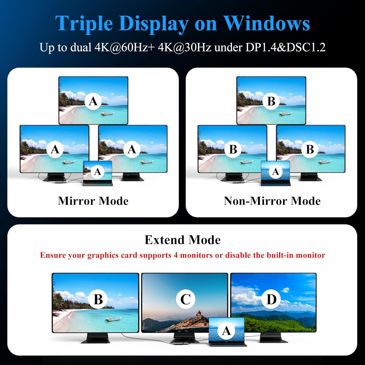 - ★ Docking Station 3 Monitors: Laptop Docking Station DP*2 8K 144HZ & HDMI 4K 60HZ, docking station dual monitor dual monitor for visual creators and gamers, usb c dock delivers ultra HD images with triple 4K (under DP1.4 & DSC1.2) through HDMI and DP1/DP2 ports,Ensure your laptop's USB-C port supports video output. Note: Multi-Stream Transport (MST) is not supported on Mac laptops. Displays connected via HDMI/DP/VGA (if those video ports are available) will mirror the same image