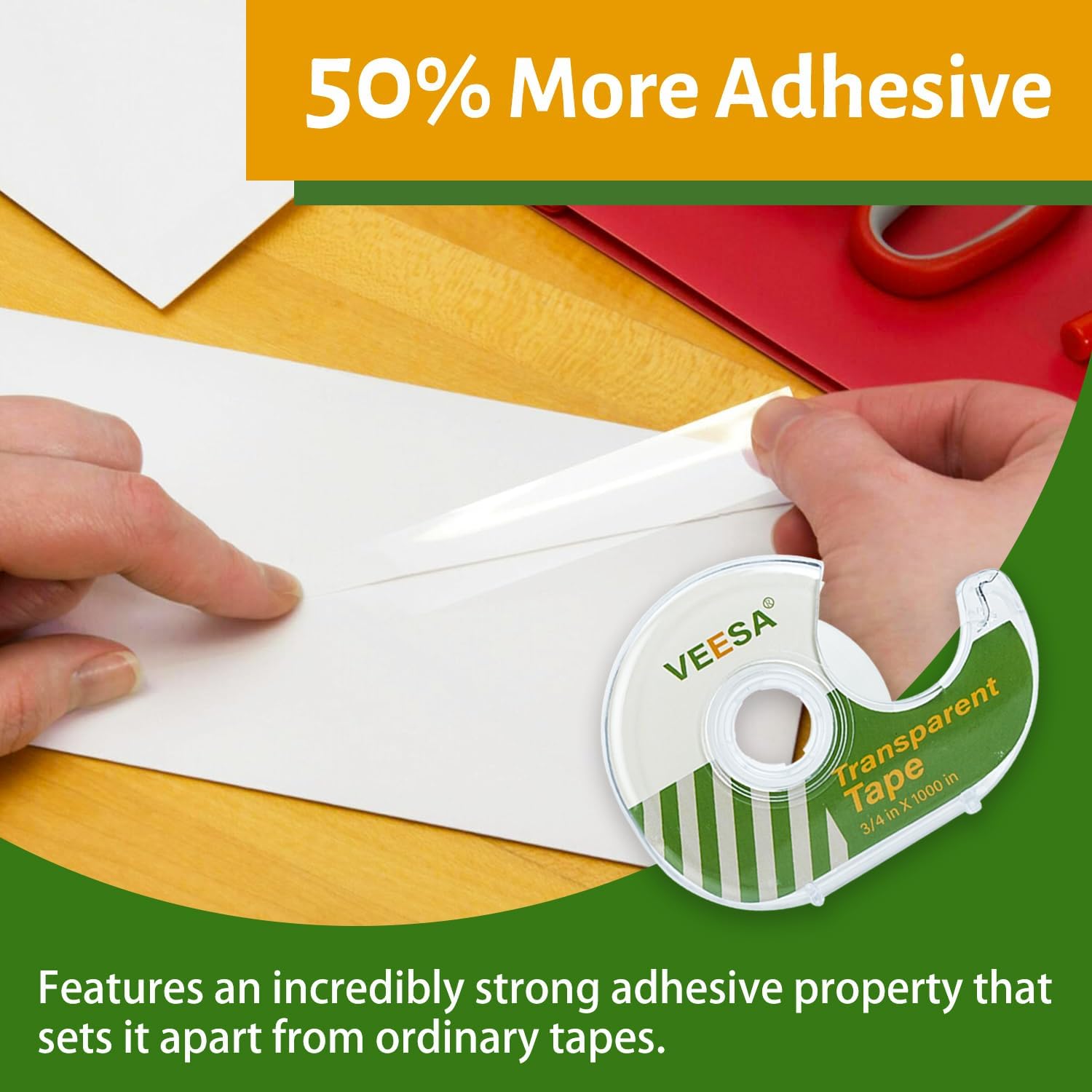 VEESA Transparent Tape with Dispenser, 3/4 x 1000 Inches, 12 Rolls Clear Tapes for Craft Jobs, Home & School Supplies