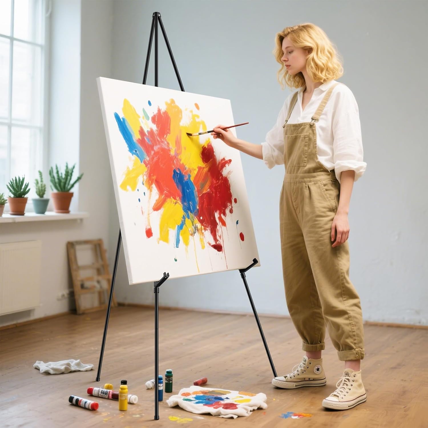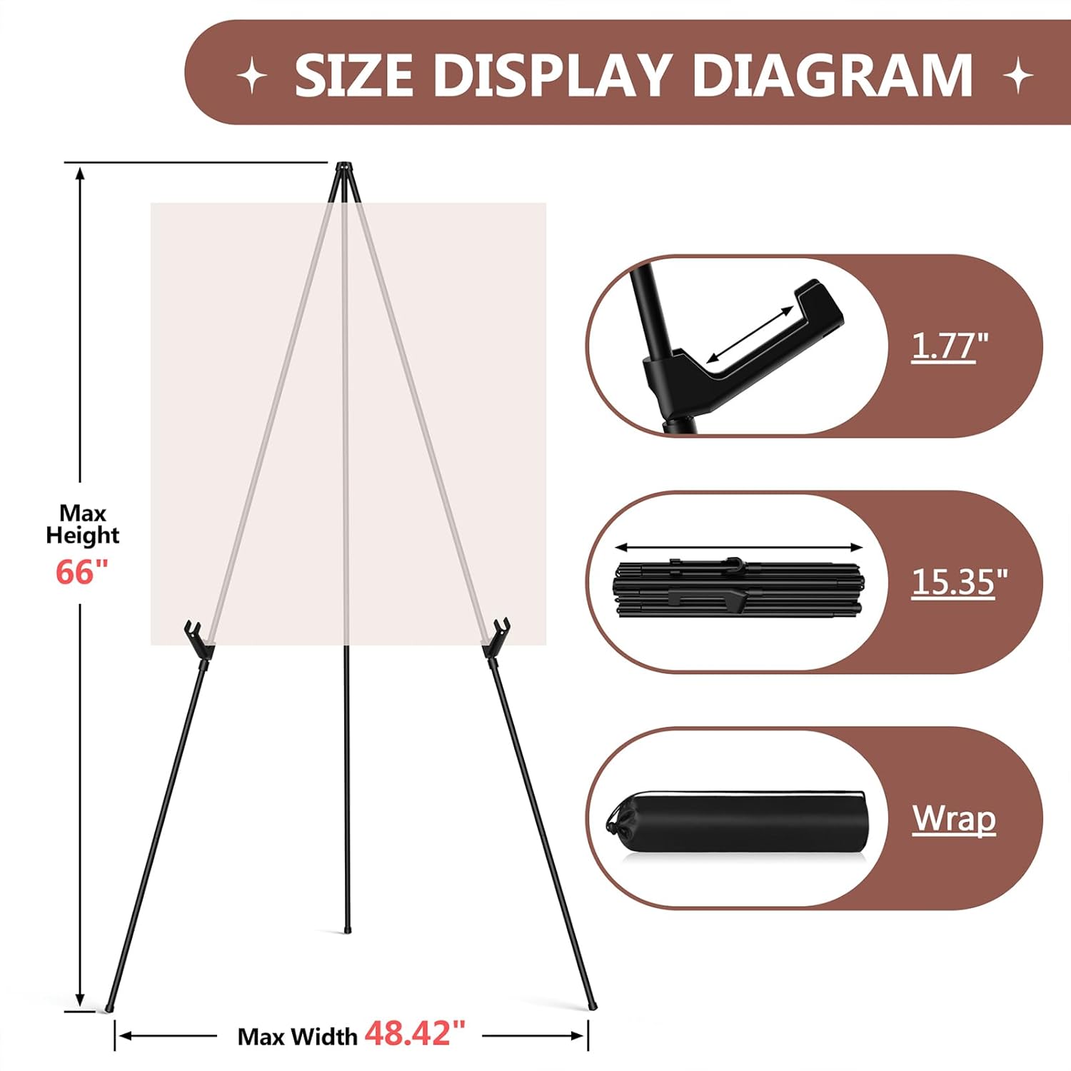 Display Black Easel Stand for Wedding Sign, Artist Instant Tripod Collapsible Portable Floor Easel for Posters, 66" Adjustable Easy Folding Metal Stand for Display Show, Arts, Painting