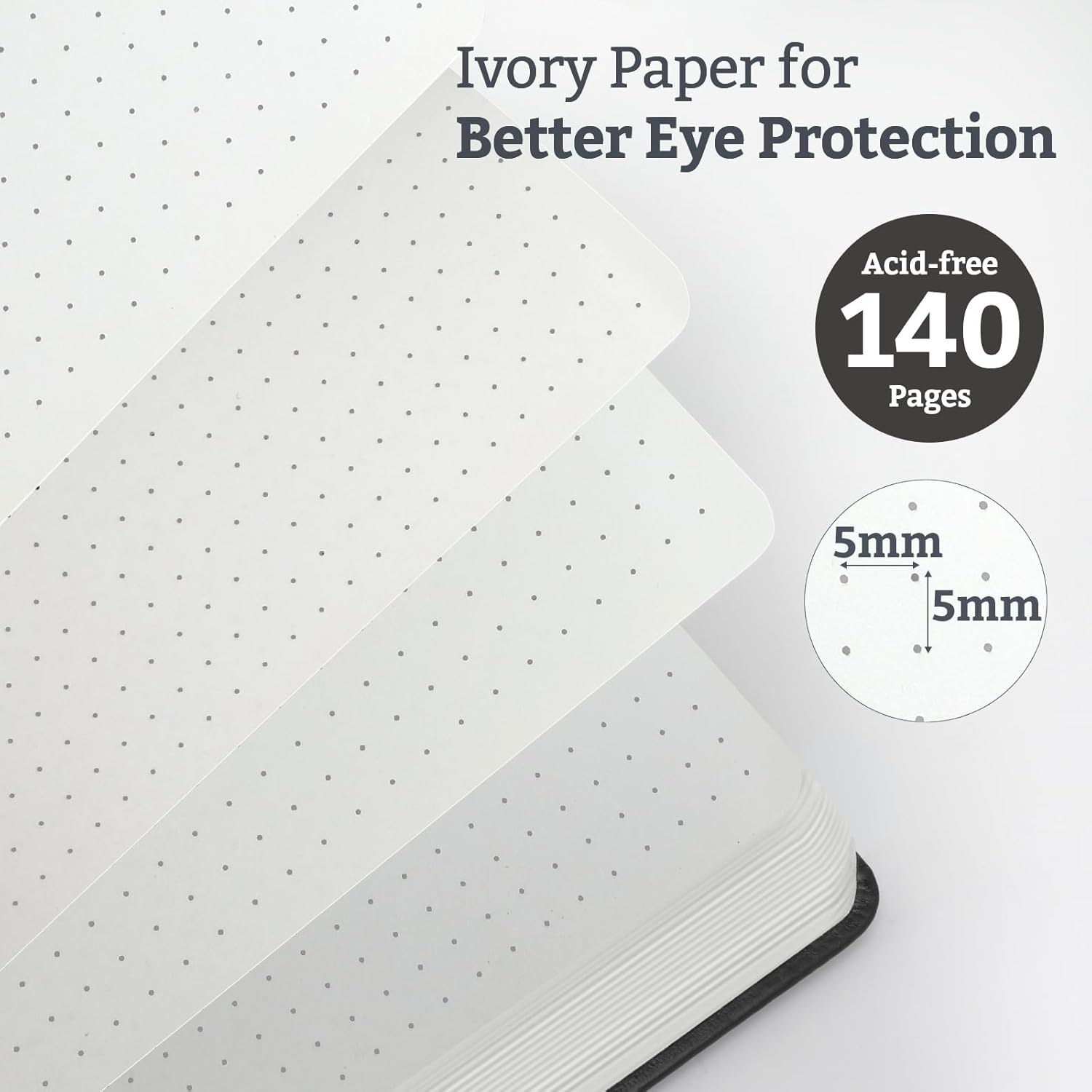 - Dotted Pages: 140 pages (70 sheets) of dotted, 120gsm acid-free paper resists bleeding and ghosting, compatible with most pens. Ivory hue eases eye strain.
