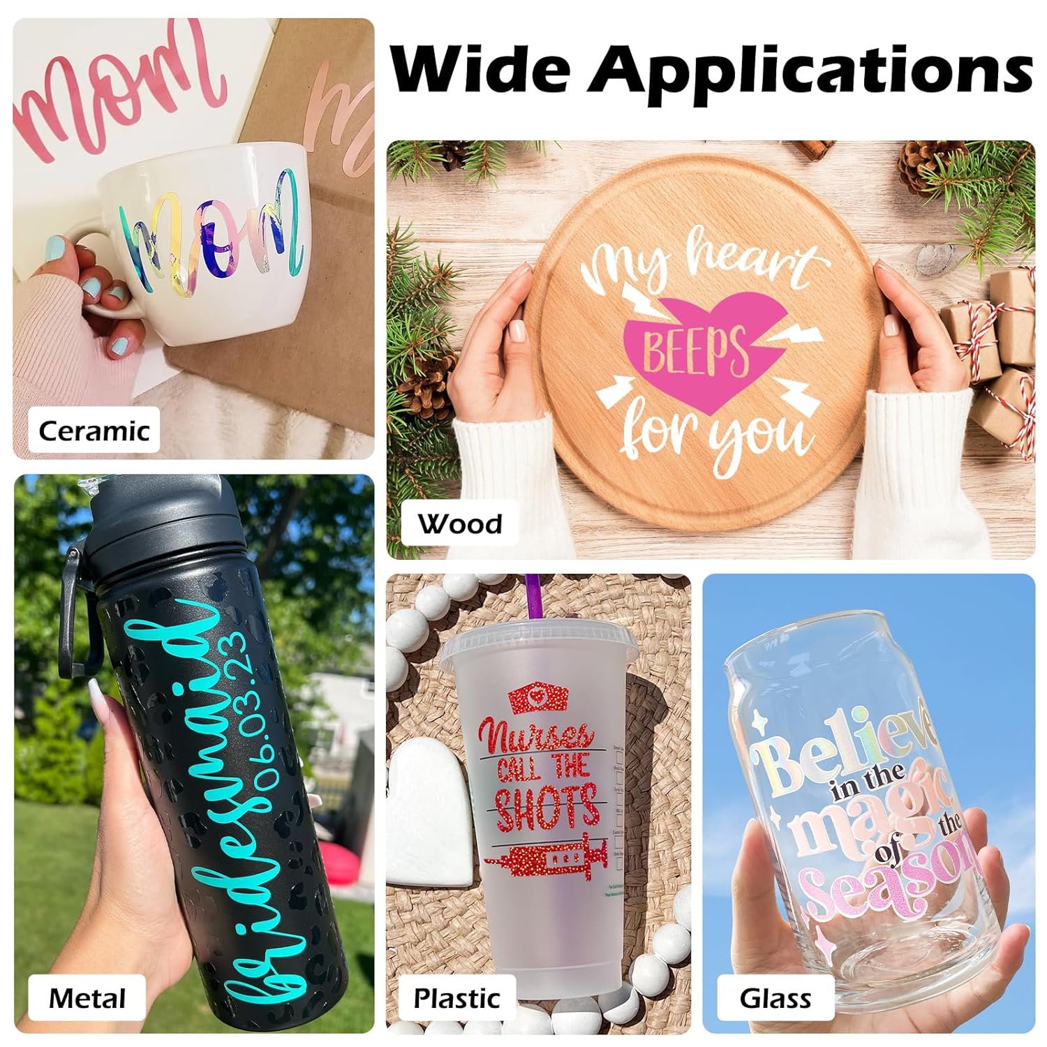 - Multiple Use: Our versatile transfer paper tape is compatible with a wide range of Indoor/Outdoor Adhesive Vinyls, including Silhouette, Provo Craft, and Oracal, making it ideal for smooth surfaces like Halloween sign stickers, windows, walls, ceramics, and glass, but not suitable for Glitter Vinyl, or HTV