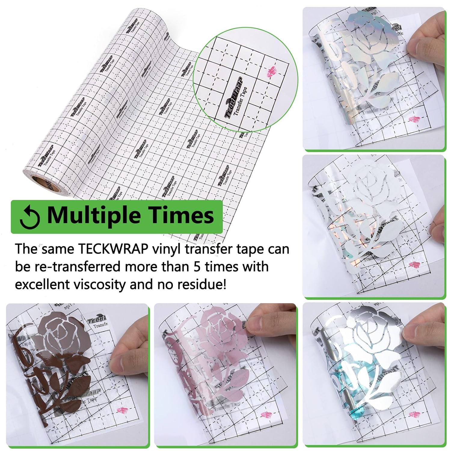 - No Sticky Residue Left Behind: TECKWRAP transfer tape for vinyl is the solution to the sticky residue that transfer tapes often leave on your vinyl or the applied surface. It's crafted to eliminate this problem, ensuring no sticky residue is left after the transfer