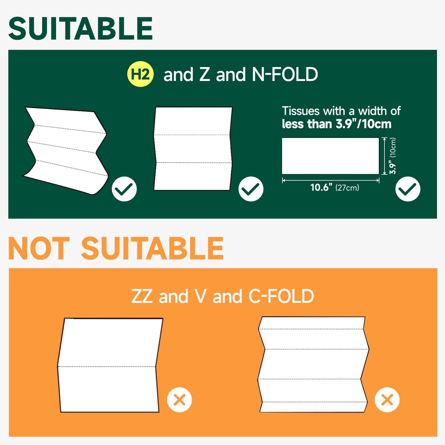 - 400 Sheets Capacity – Holds up to 400 multifold or Z-fold towels (folded to 10.6" x 3.9" or smaller), perfect for high-traffic commercial areas