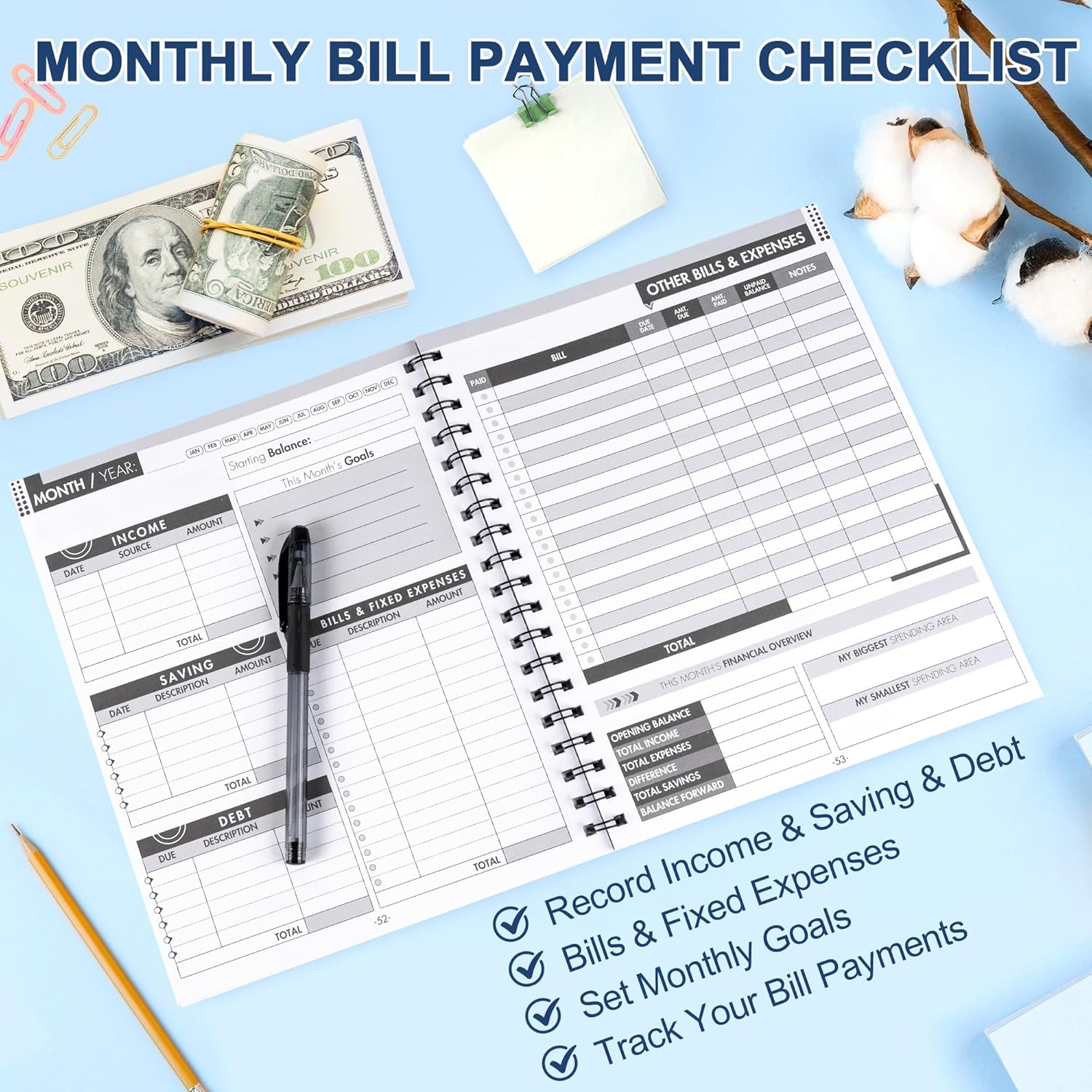 - ✅ Spiral-Bound for Convenience – Durable wire-bound bill organizer lays flat for easy writing, making budgeting, expense tracking, and financial planning effortless.
