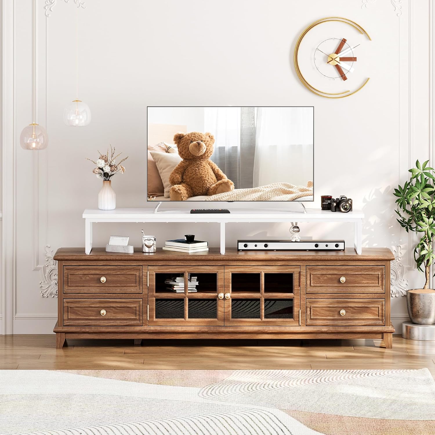- 【Assembly & Service】- You can complete the installation simply and easily according to the instruction manual of the tv shelf or the installation video. If you have any quality or installation problems with the product, we will provide you with excellent after-sales service.