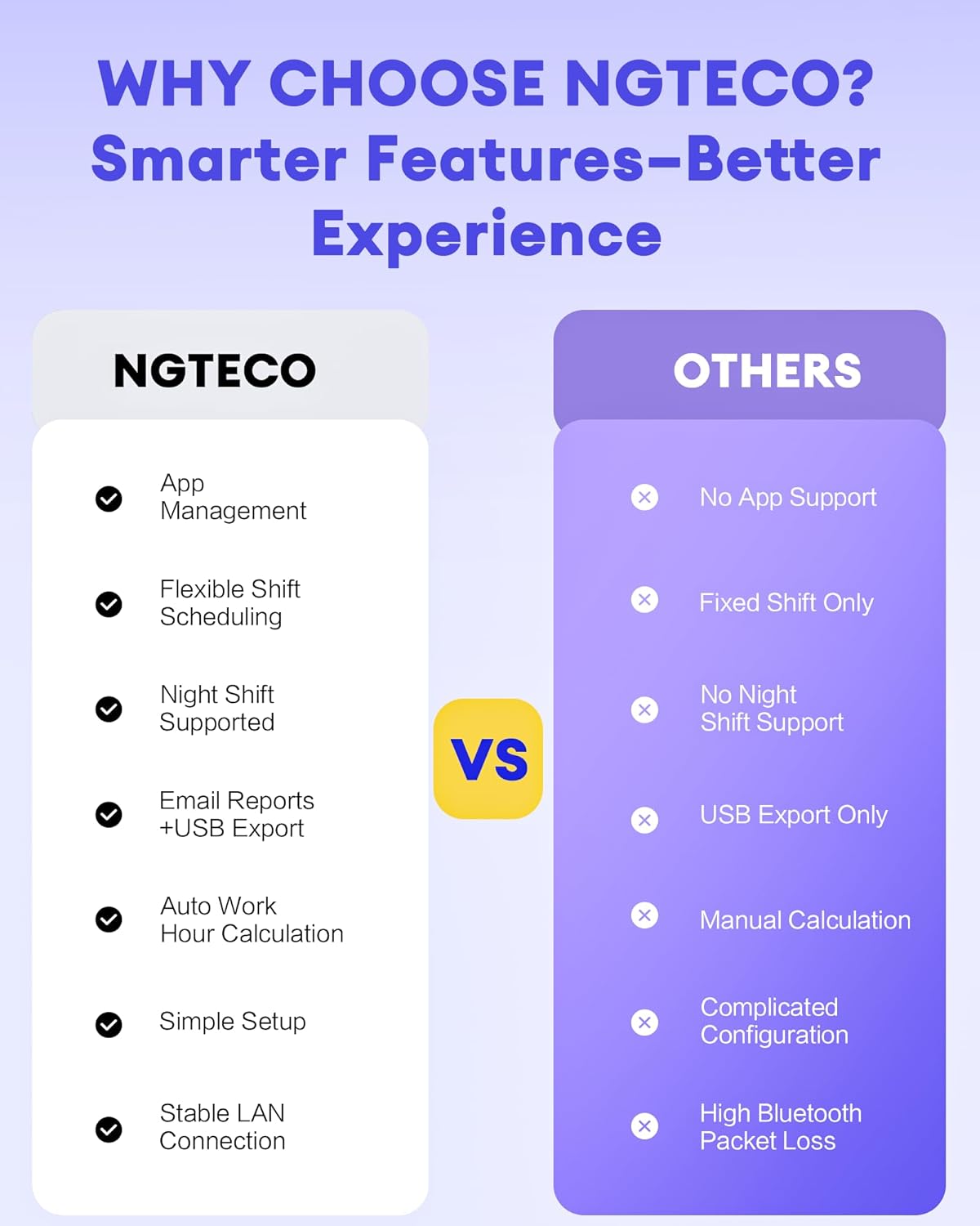 - Eco-Friendly & Paperless Solution: Say goodbye to paper time cards with the K4. It supports unlimited daily punches, reducing printing errors and saving costs on supplies. The NGTeco Time App allows easy setup of pay periods, attendance rules, and report downloads from your smartphone (requires 2.4G Wi-Fi).