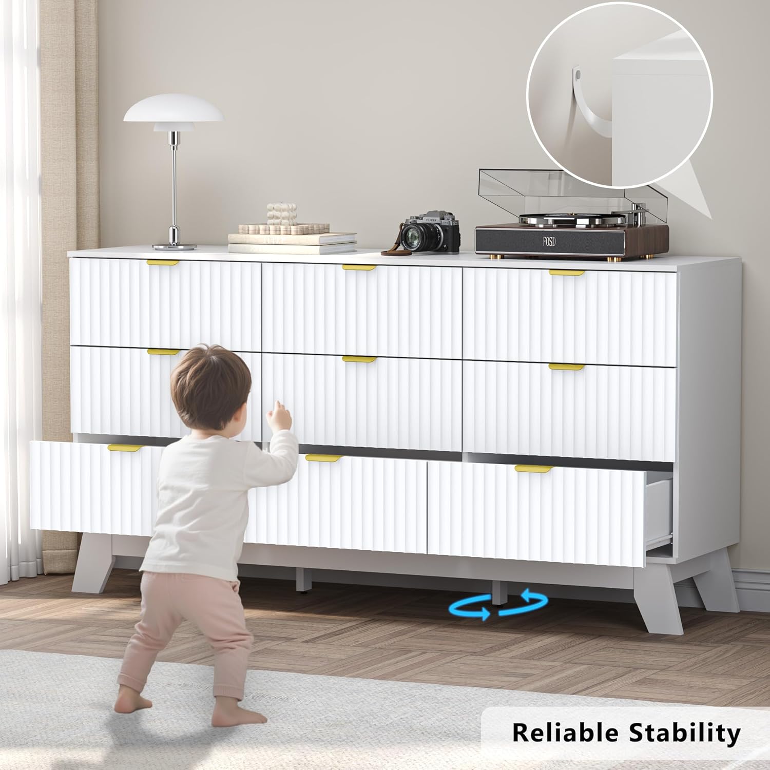 - Sleek, Wide Design with Modern Boho Aesthetic: Designed for those needing extra-wide storage, this 9-drawer dresser features BORNOON’s signature wave-like fluted panels and smooth curved edges, combining sophistication with safety. Its modern boho aesthetic elevates bedrooms, hallways, and living spaces alike.