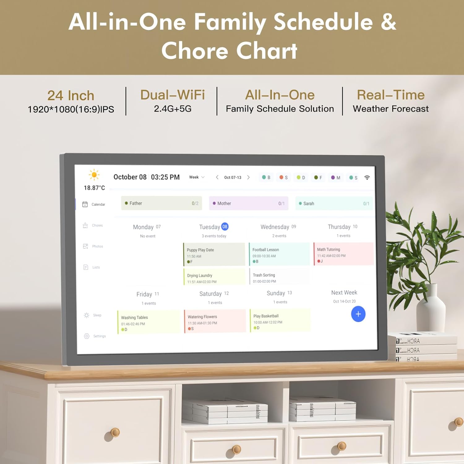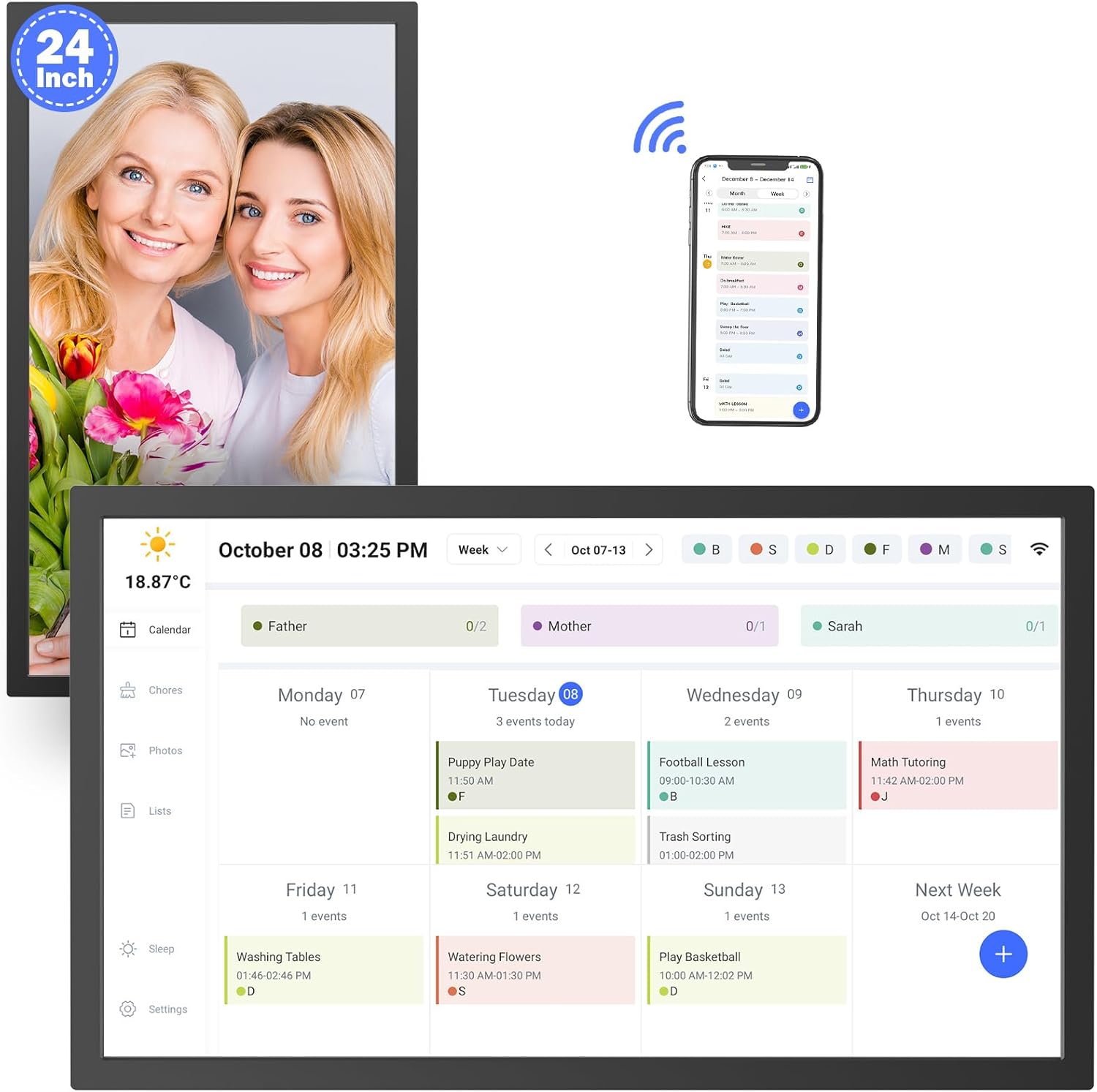 - Advanced Chore Chart and Task Organizer:Encourage autonomy with a built-in interactive electronic calendar that features a customizable chore chart for family. Great for managing tasks and routines in busy households.