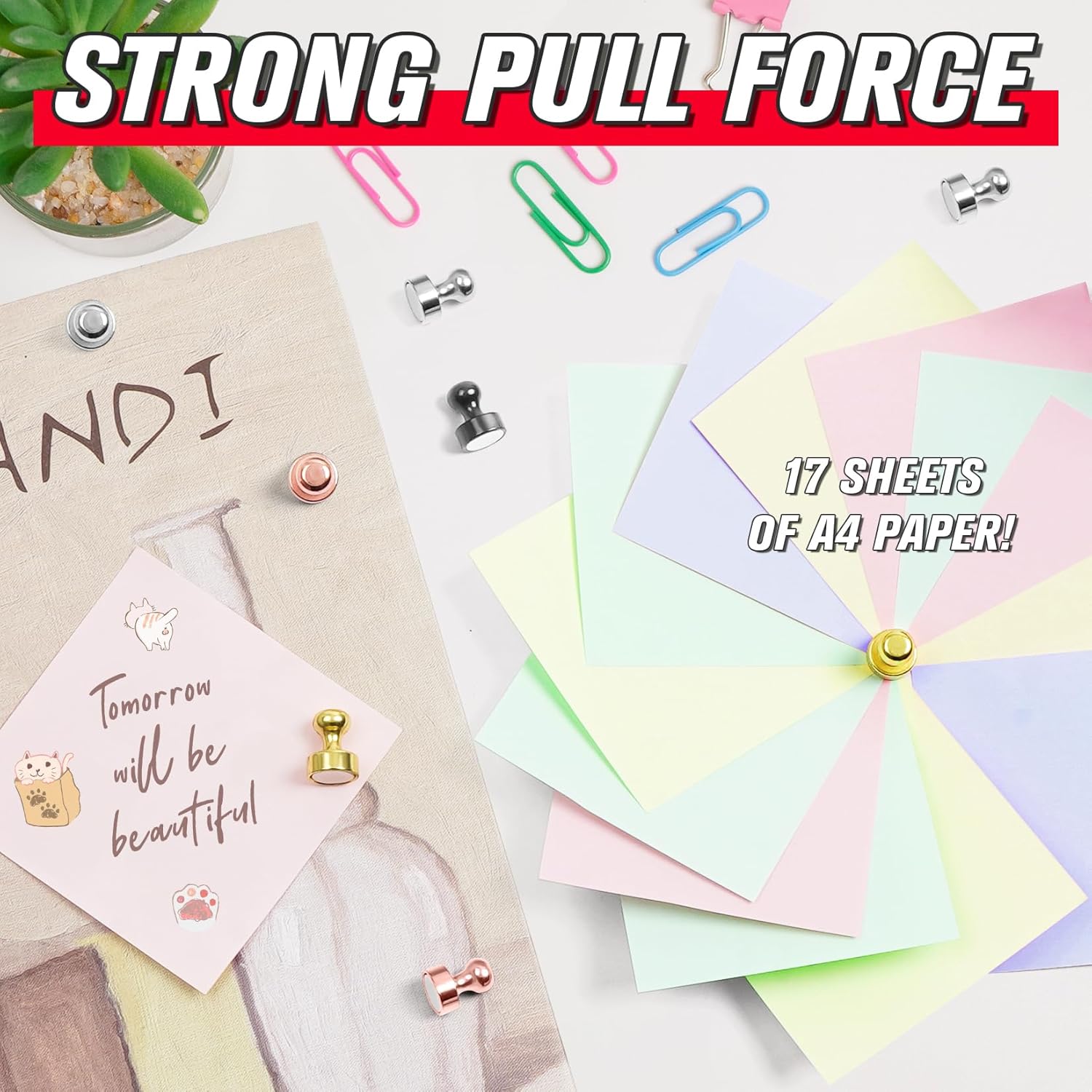 - Superior Magnetic Grip - These fridge magnets are small but strong, built with N52 neodymium magnets, and can hold up to 18 sheets of A4 paper or 30+ sticky notes without slipping.