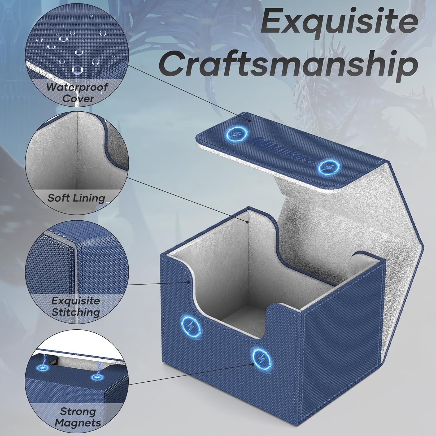 Mlikero Card Deck Box, Commander Deck Box Holds 100+ Double-Sleeved Cards with Divider, Leather Magnetic Closure Card Box Fit for MTG, TCG (Blue)
