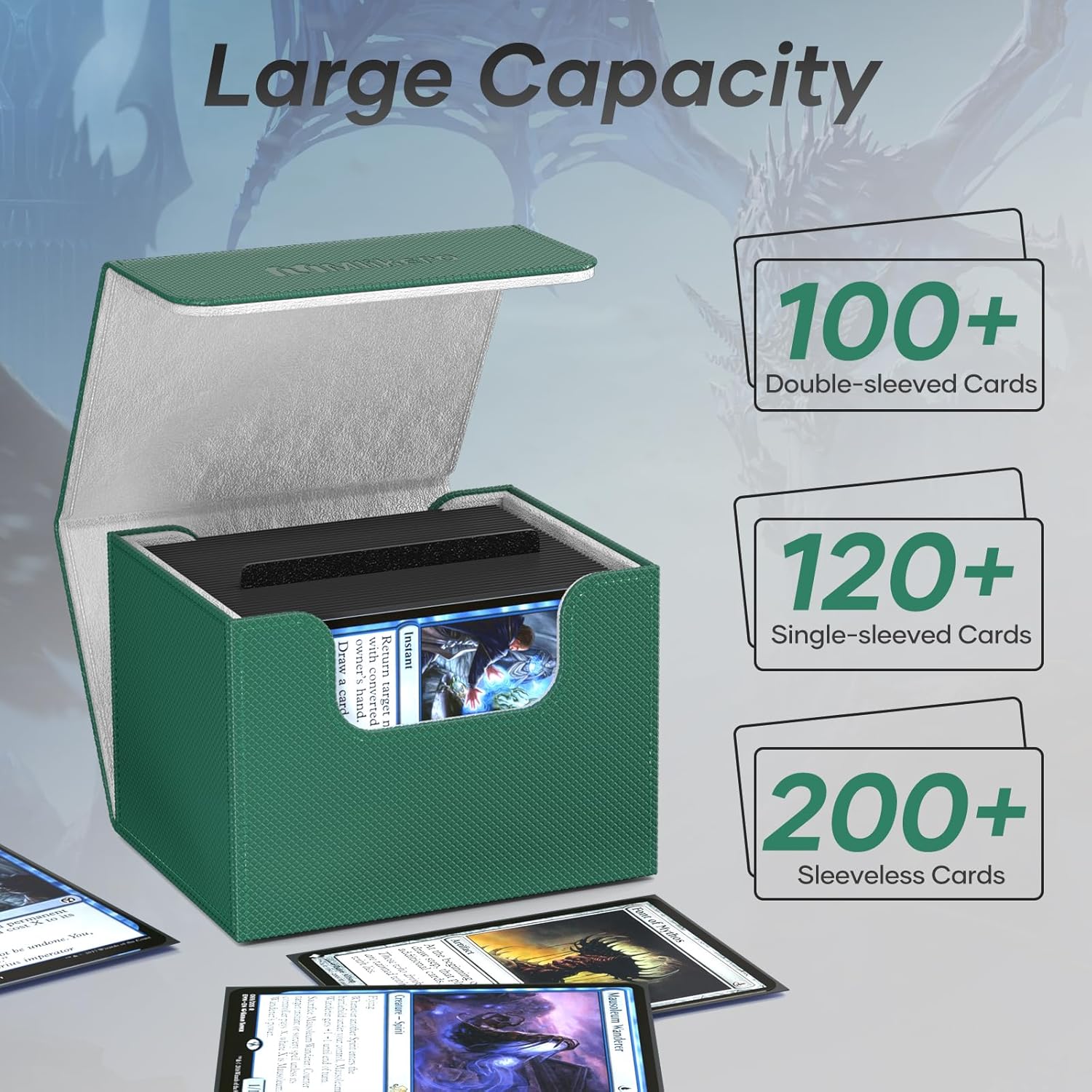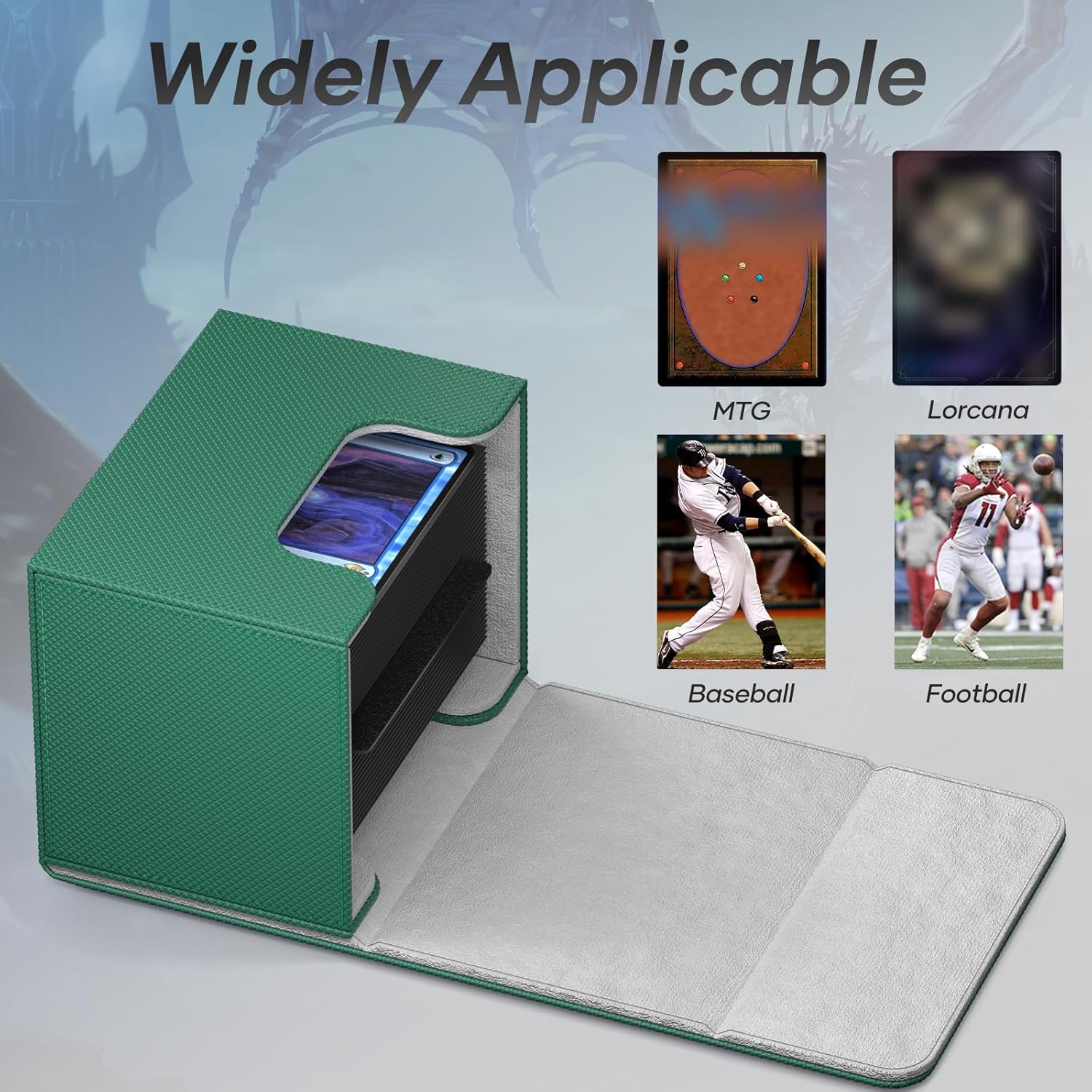 - 【Versatile Card Storage】Designed with card gamers in mind, this card deck box is compatible with a wide variety of trading cards. The deck box tcg works with MTG, PKM, TCG, helping you keep your collection organized and enhancing your gaming experience.