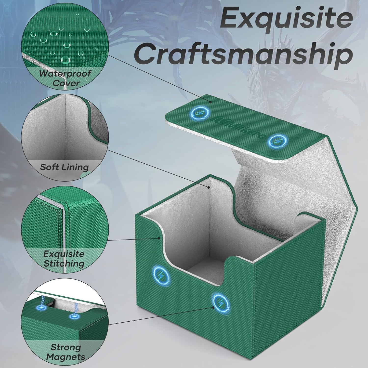 - 【Efficient Card Organization】This magic deck box includes 4 dividers, allowing you to organize your cards efficiently. The strong magnetic closure ensures the card box stays securely closed, even when flipped over, providing reliable protection for your cards and preventing any damage.