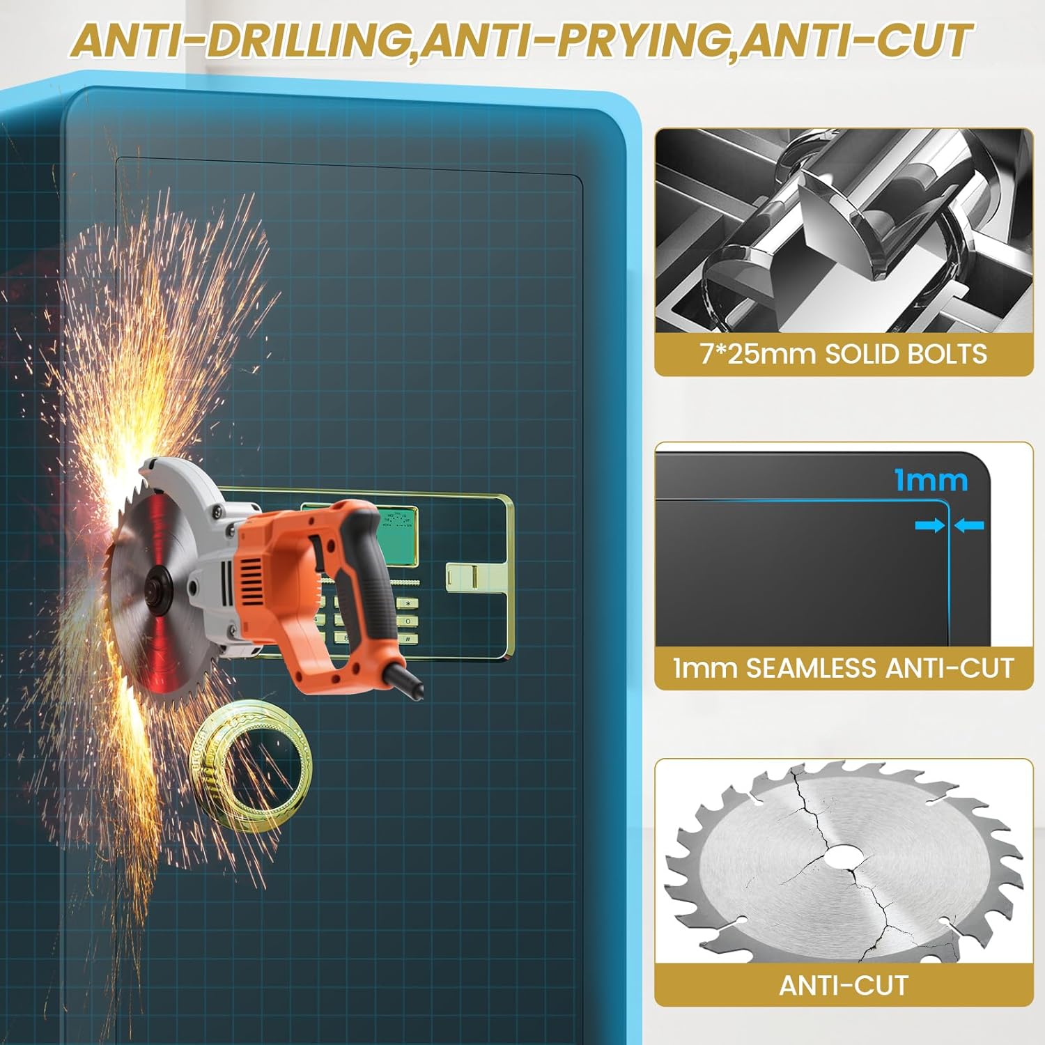 - 7.0 CU FT LARGE SAFE FOR HOME USE: If you are looking for something to keep burglars from getting your possessions or keep something away from kids, this is 100% adequate. Interior size: 27.56"(H) x 15.75"(W) x 12.99"(D). 68mm ultra-thick alloy pry-resistant steel door, 7*25mm high-strength solid core lock bolts and pry-resistant concealed hinges, offering reliable protection for your valuables. Our safe weighs up to 48.5 pounds, so it's hard for anyone to steal it