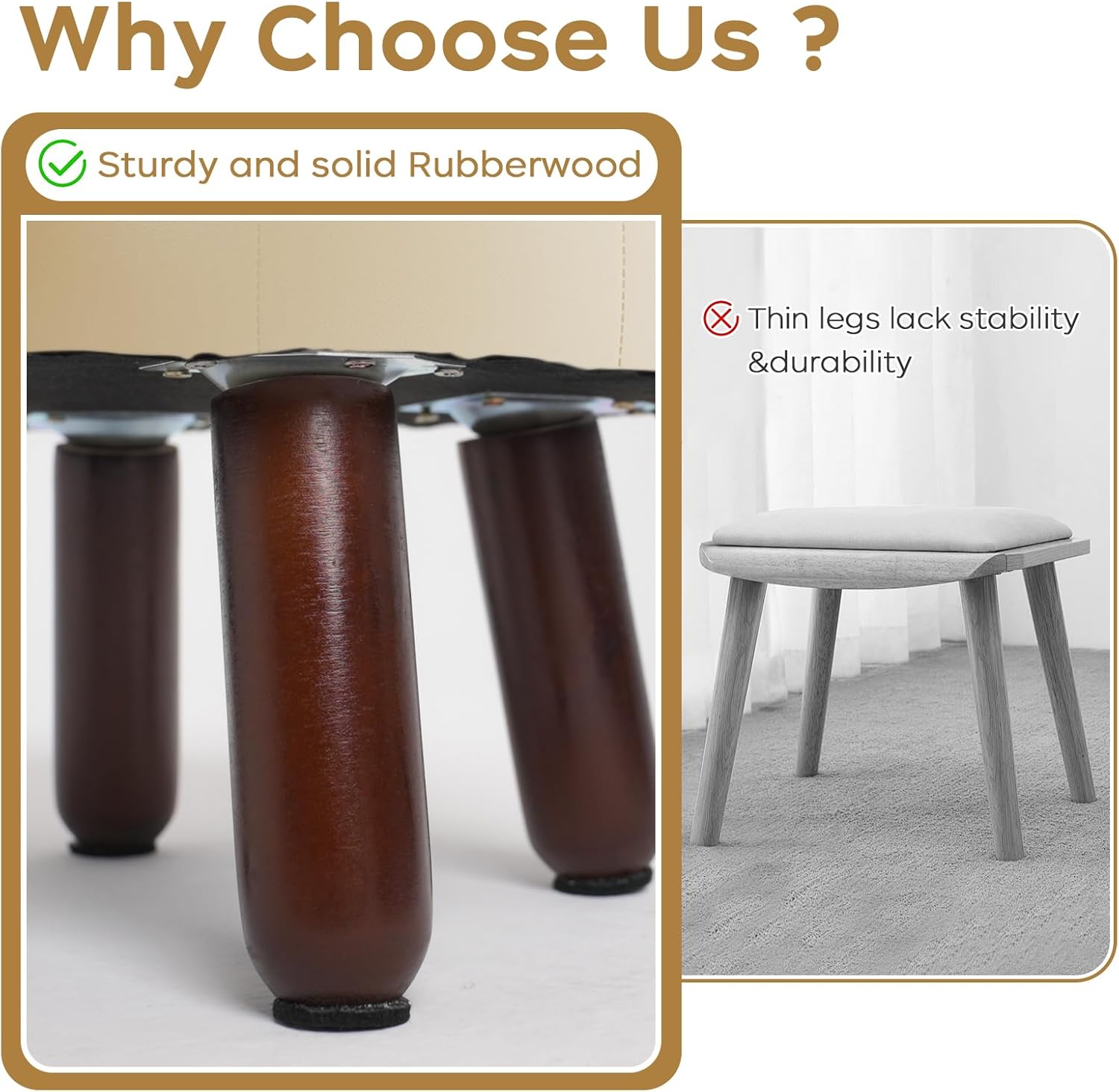 - ăAnti-Slip Designă- These leather foot stools small ottoman rubber legs come with dedicated felt pads to prevent scratches on floor and keep it from sliding.Wood leg with non-slip felt pad is quiet when moving, and can avoid leaving scratches on floor.The small footstool is perfect for small spaces and is compact enough not to get in anyone's way.