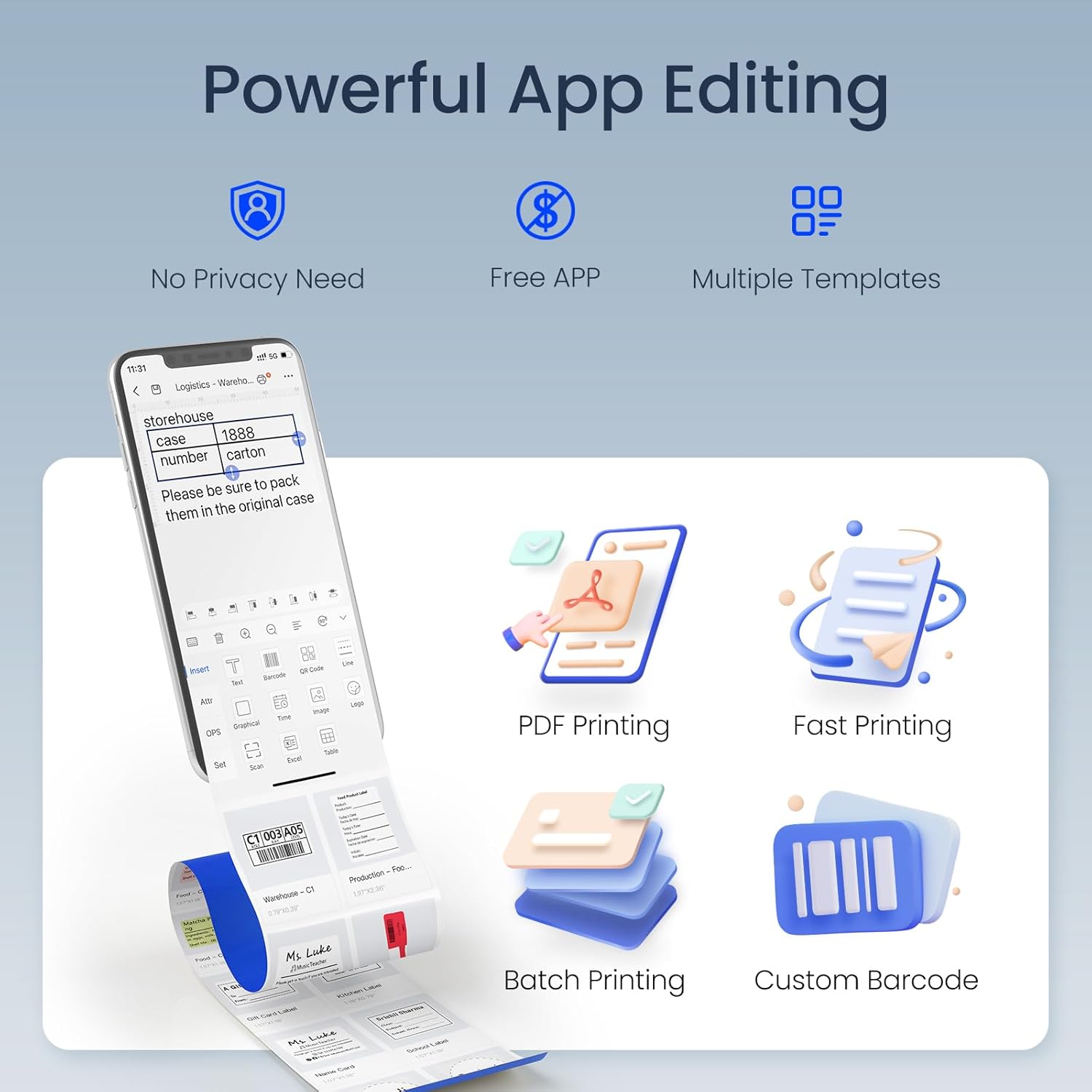 - Fast & Stable Connection: Portable thermal label printer built -in 1500mAh large capacity battery can print 4 hours continuously after fully charged. Mini label printer only 240 grams and speed up to 55mm/sec. High speed brings high efficiency and helps your business grow faster!The wireless printer supports iOS, Android and window. Fast and stable connection. Not suggested for use with Pad, incompatible with Pad.