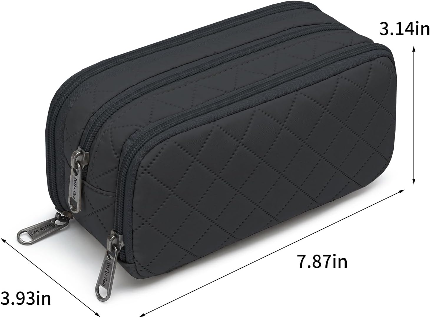 Della Gao Small Pencil Case Large Capacity Pencil Pouch Marker Pen Bag Coin Pouch Office Stationery Organizer (Black-3BKRH)