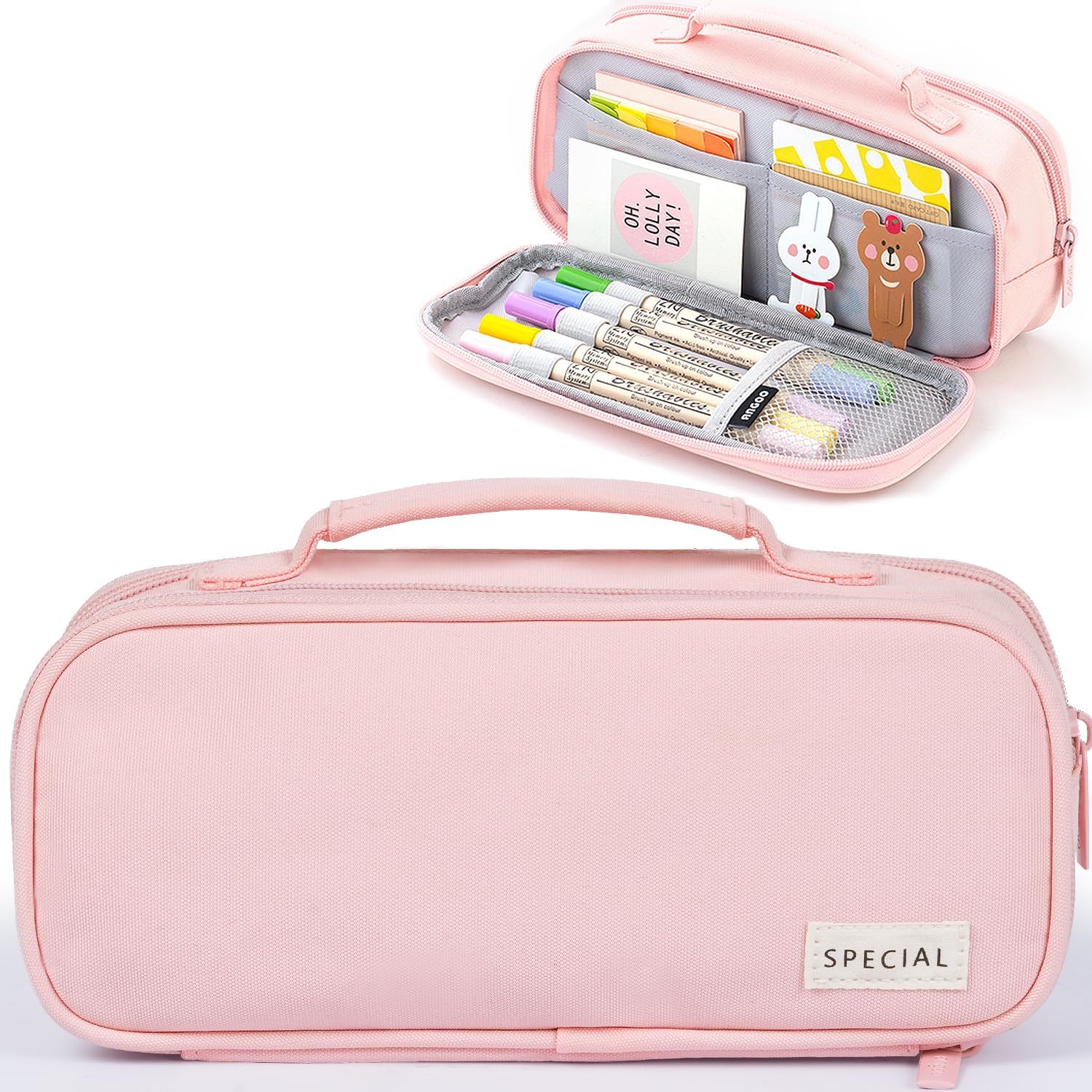 - Superior Material and Portable: The pen pouch is made of premium quality polyester with fine workmanship and details, sturdy and easy to clean, pencil case with smooth zipper for easy opening and closing. Comfortable Thickened handle allows you to carry it easily to any occasion.