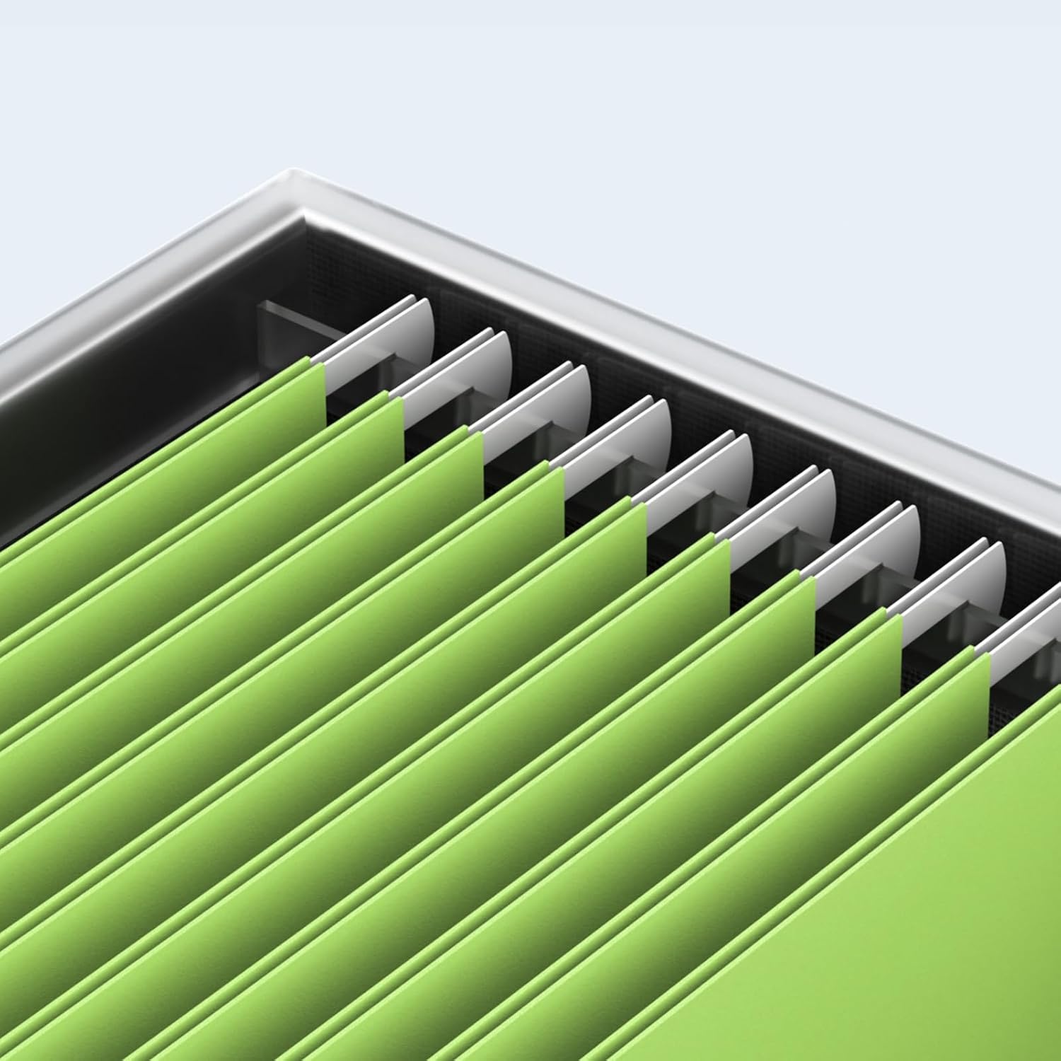 - [ Integrated plastic Slide Rail,Dual Function]- The integrated plastic slide rail that can both hang files and stabilize the box. The slide rail design makes file classification clearer and more convenient to access, while also effectively preventing files from slipping. The stability of the box has also been greatly improved, and it can remain stable and not tilted even if a large number of files are placed.