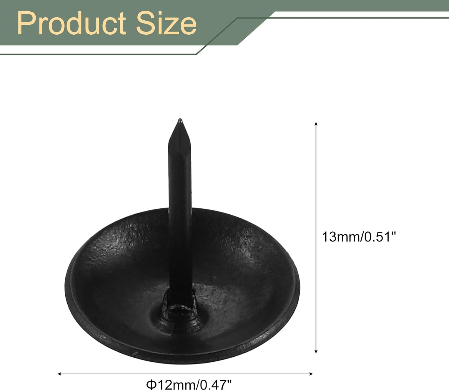 uxcell 100 Pcs Upholstery Tacks, 12 x 13mm Round Head Upholstery Nails Pins Vintage Decorative Furniture Tacks for Chairs Sofas Beds DIY Project, Black