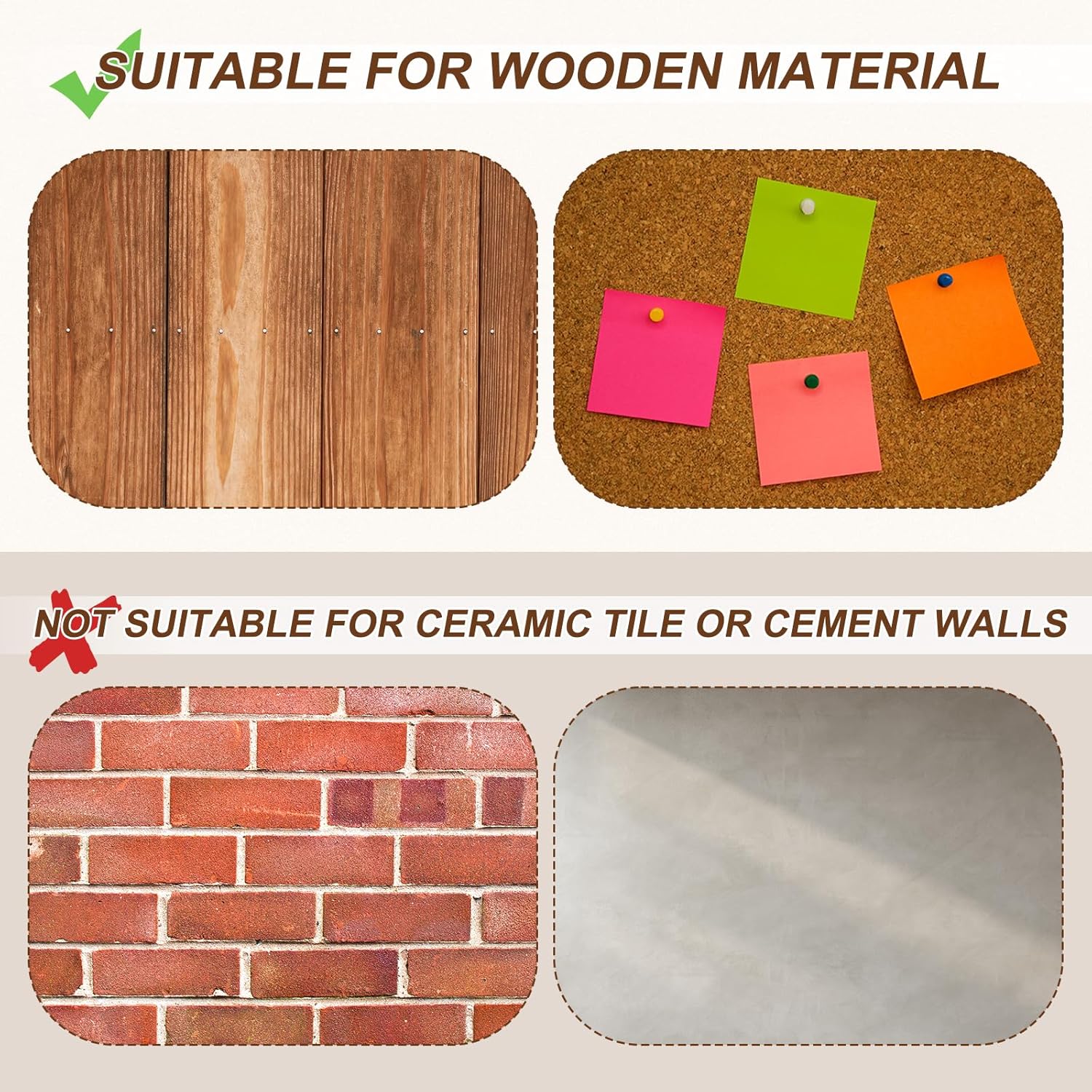 - [Easy to Use] - These upholstery tacks are designed to be easy to insert and remove, makes them great choice for quick replacement and adjustment. You can clamp the nails with pliers and install them with a rubber nail hammer, or press them directly into the cork board with your hands. After testing, the nails can only be nailed into the lime layer on the surface, so the nails are not suitable for hard walls such as tiles and cement walls