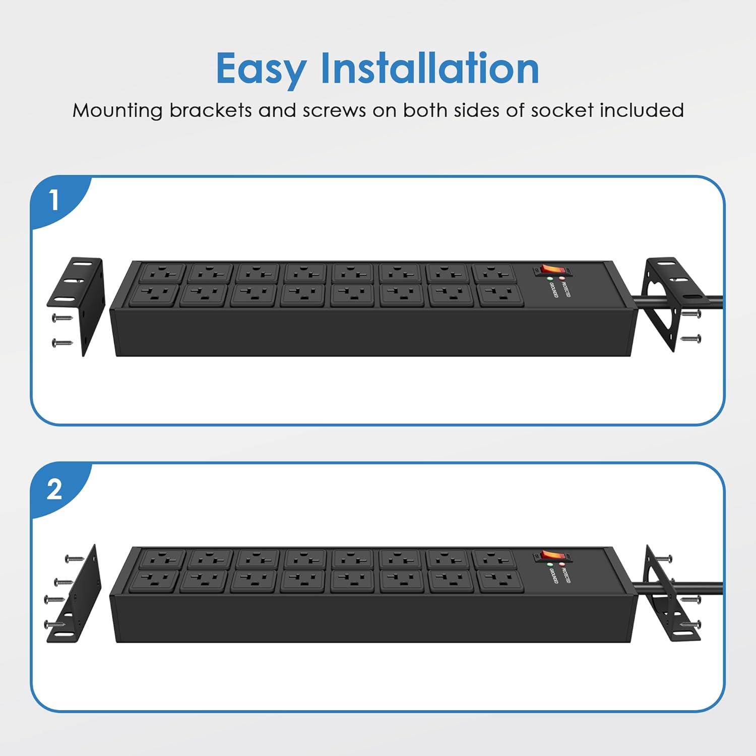 - Easy to Install Wall Mount Power Strip: The heavy duty surge protector is equipped with two mounting brackets. You can easily secure it to walls, desks or so. Can be flexibly applied to industrial, garage, workshops, shops, offices and workbenches, etc. We offers super after-sales support, there are 1 year replacement time, just ask us for support if your have any questions.