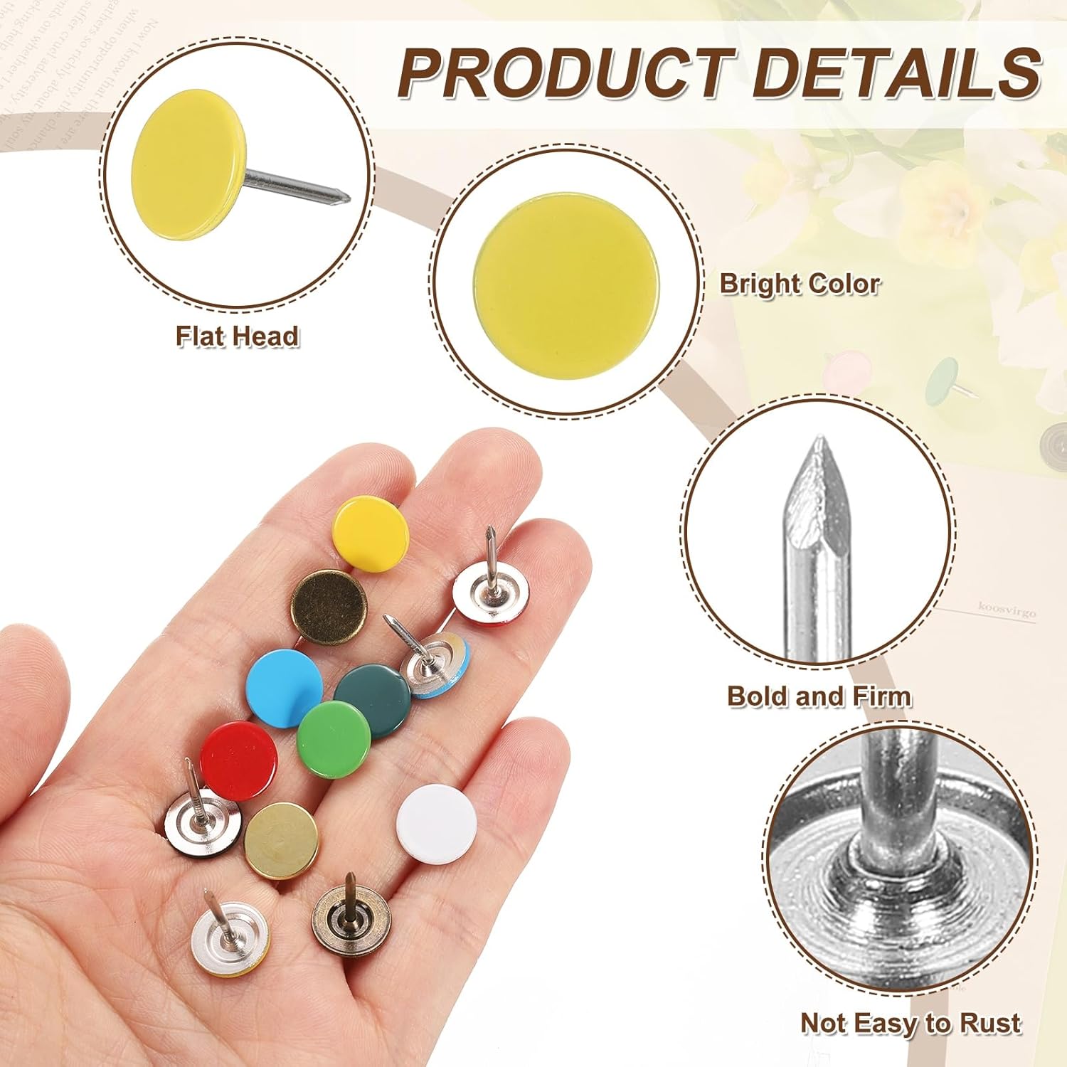 - [Wide Application] - The thumb tacks are both practical and decorative and can be used in a variety of furniture and DIY craft projects. Widely used to decorate furniture such as upholstery, sofas, headboards, chairs, benches, stools, wooden boxes, and can also be used to fix memos, pictures, maps and other lightweight items on cork boards
