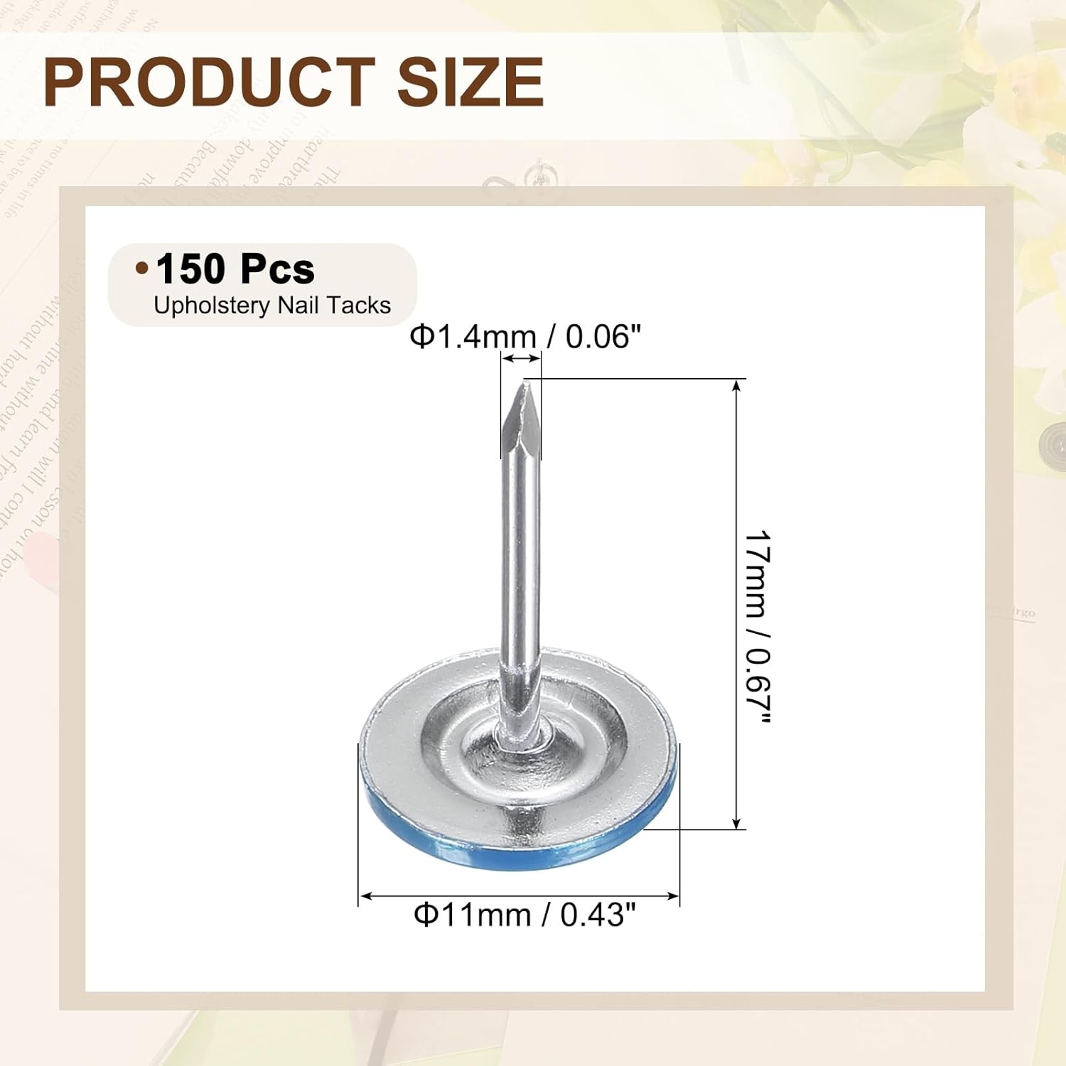 - [Size & Quantity] - The package comes with 150pcs decorative upholstery tacks. Sufficient quantity to meet your different daily needs. The overall size of upholstery nails is about 11mm x 17mm/0.43-inch x 0.67-inch(D*H)