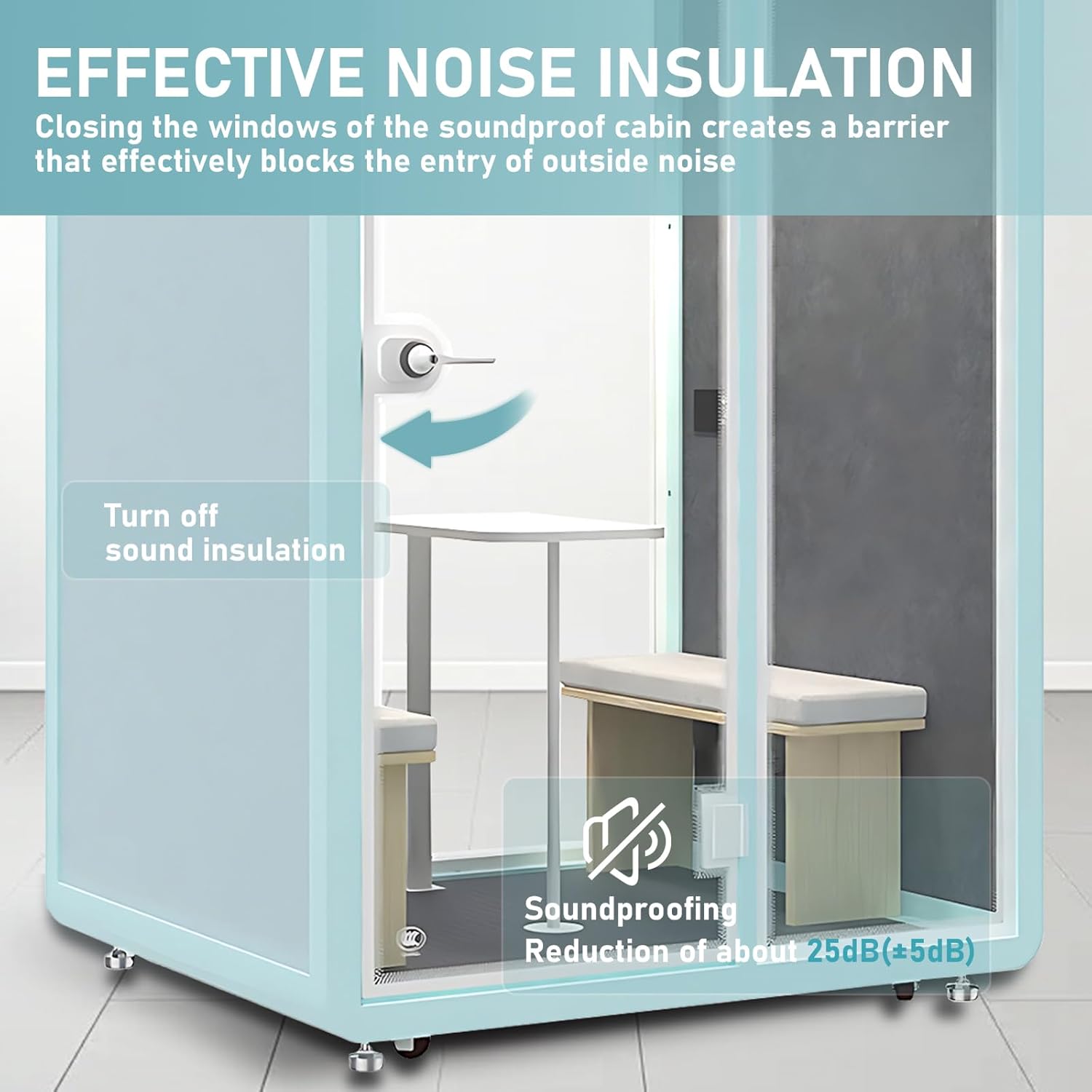 Office Sound Booth with Audio Privacy - Freestanding Soundproof Booth Includes Light Blue Frame Design,Modern Soundproof Room with Light, Socket,Casters for Study,Negotiation (59.05IN)