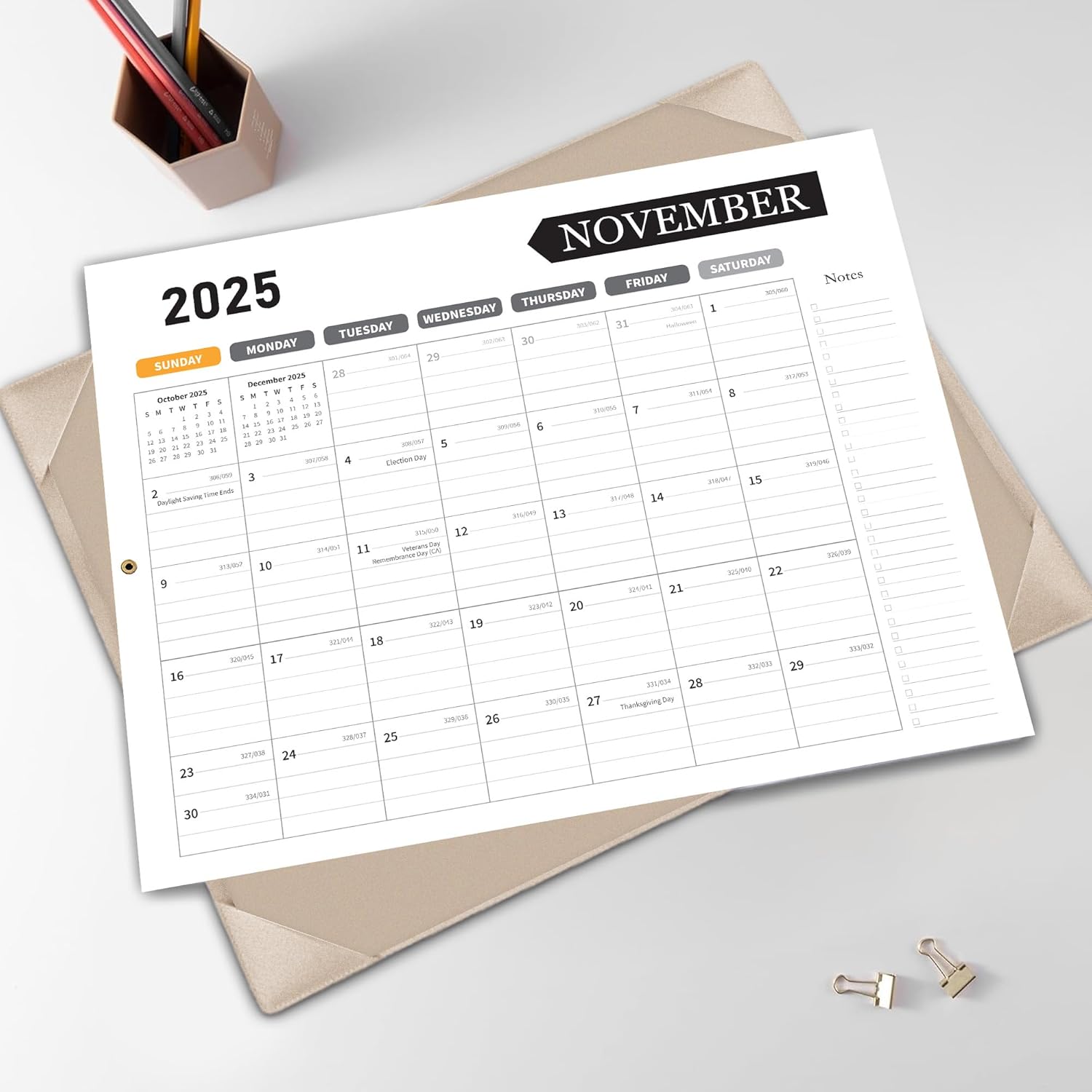 - Generous Writing Space: This big desk calendar features large, ruled horizontal spacing for planning, organizing, and note-taking to help you balance your work and personal life, Each month boasts a spacious layout (2.5" x 2.8") with marked holidays and Julian dates