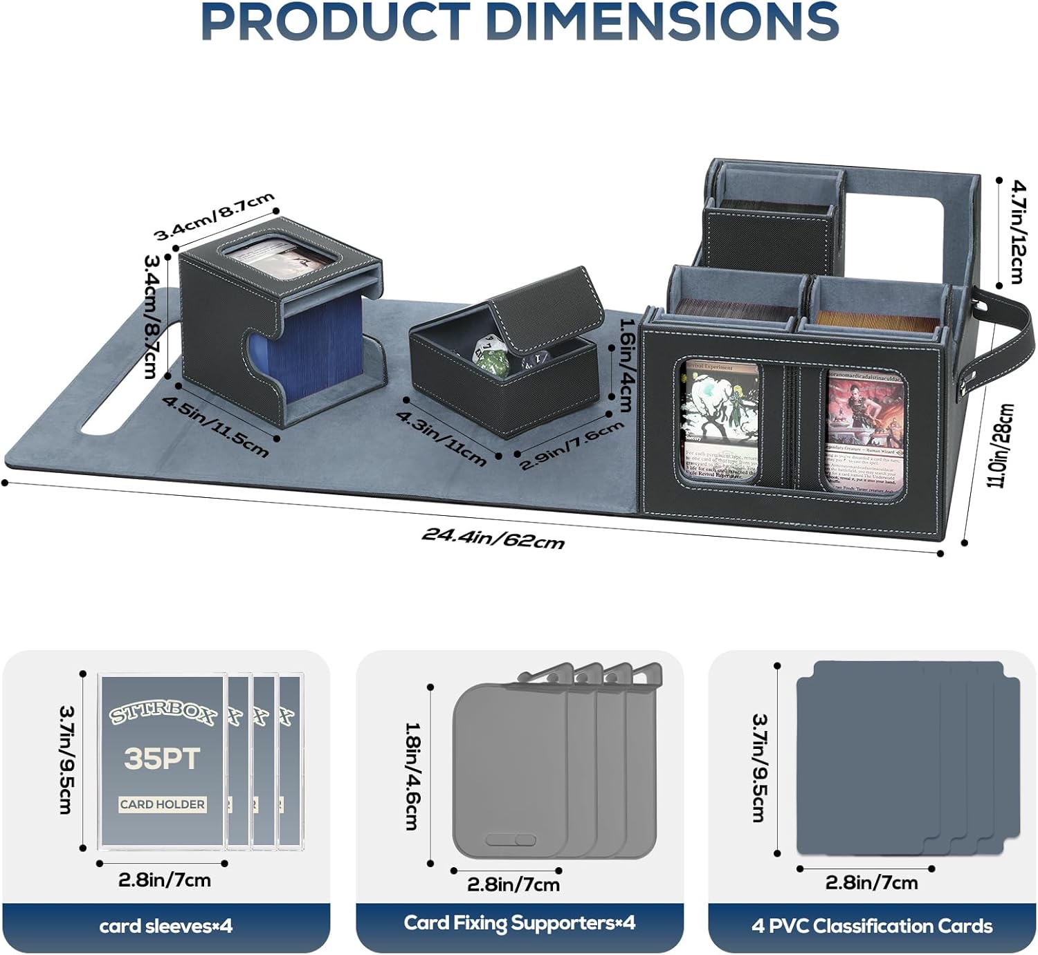 - 【Professional-grade card support system】- This trading card storage case consists of 5 boxes, 4 of which with Commander Deck Boxes are removable and come with 4 built-in card supporters and 4 markable dividers to ensure the vertical stability of the MTG Commander Deck and Yugioh Series. Whether fully loaded or half empty, the anti-collapse design works effectively.