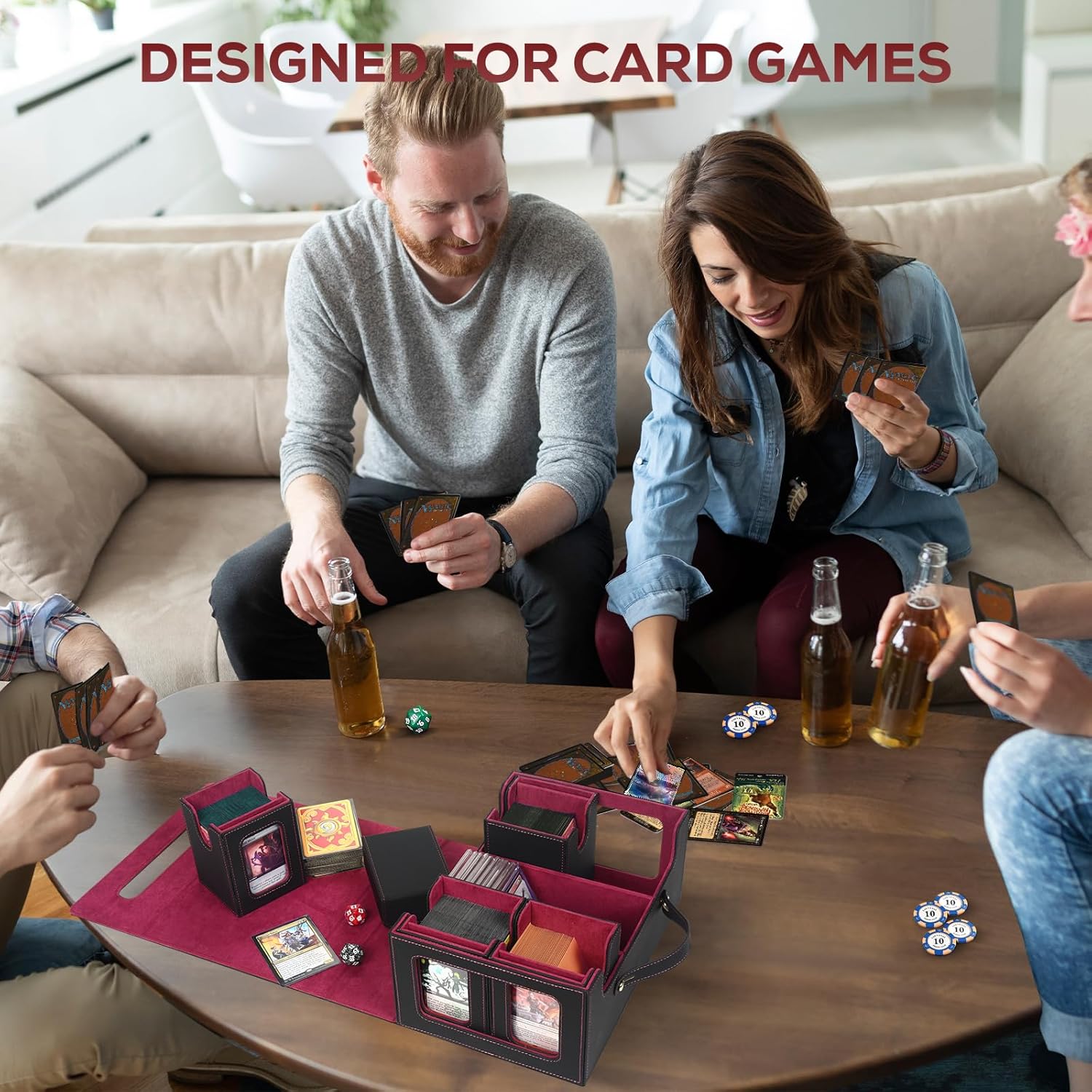 - 【Holds 600+ Double Sleeved Cards】The size of our deck card case is 11.0x7.9x4.7 inches, large enough to easily store 900+ single-sleeved cards, 600+ double-sleeved cards, 1400+ sleeveless cards.