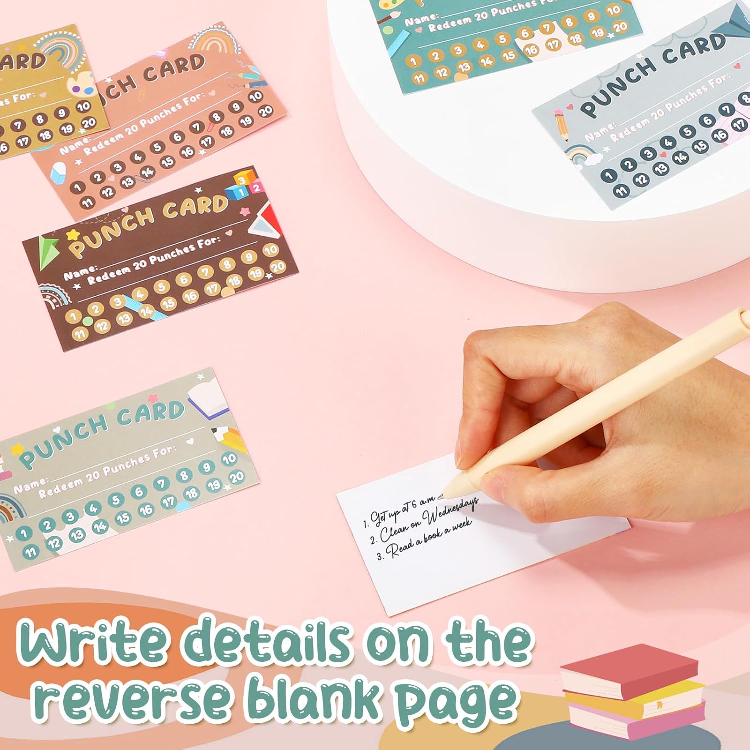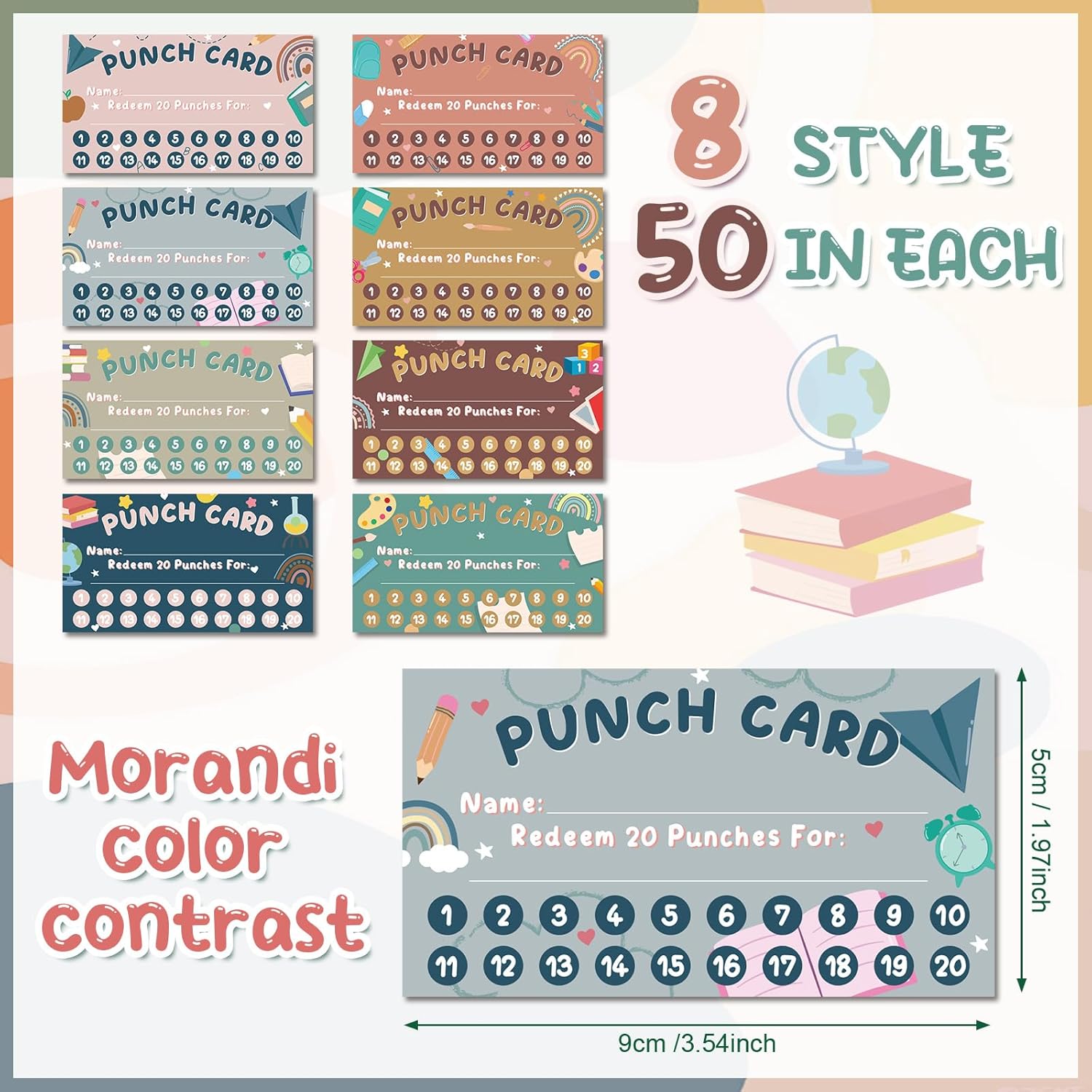 - Morandi Design: punch cards for kids at home has 8 different Morandi styles with vibrant patterns and colors, printed with letters like 'punch cards', 'redeem 20 punches for', etc., simple and generous; Vivid and eye-catching, blank back design allows you to send other messages to students; Punch design 1 to 20 score, you can punch in according score