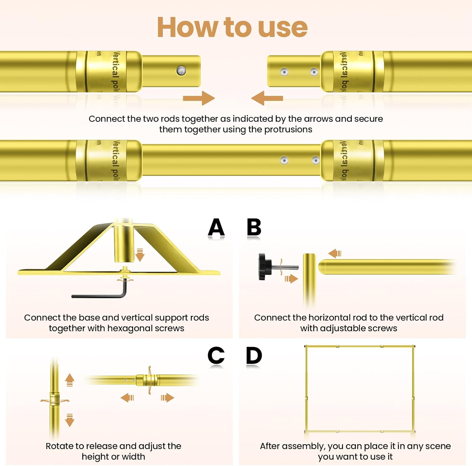 - 【Adjustable Frame】: The telescopic banner stand is suitable for multiple size, They are all telescopic and can be infinitely adjusted to match the size you need, Height adjustable (Min 3.4ft - Max 10ft), width adjustable (Min 6.2ft - Max 10ft).