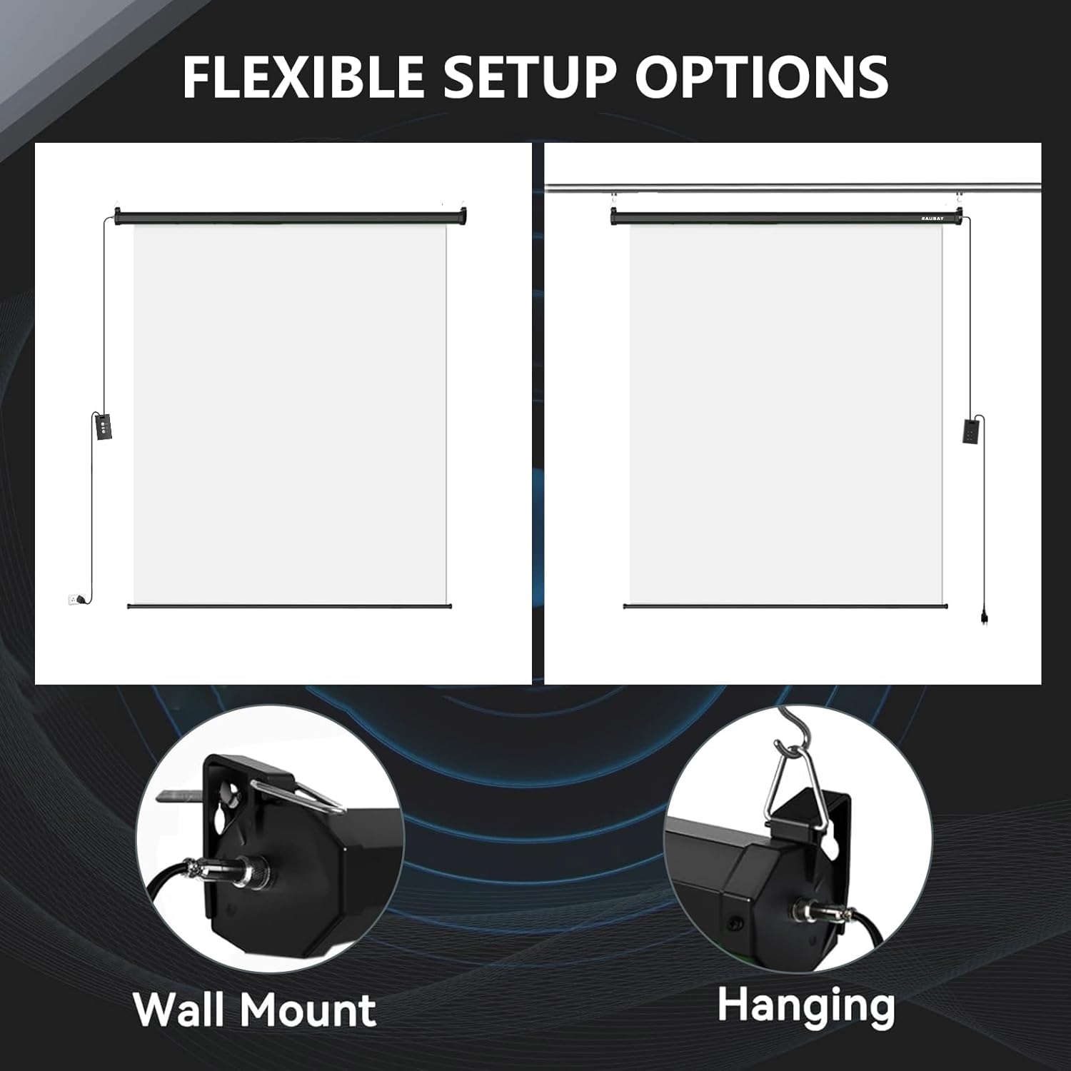 - š¤ćDual-Side Power DesignćDesigned for ultimate adaptability, our retractable pull-down green screen supports both wall and ceiling mounting. The durable metal housing features power cable ports on both sides, so you never have to worry about the outlet locationāmaximize your setup flexibility no matter how your space is arranged.