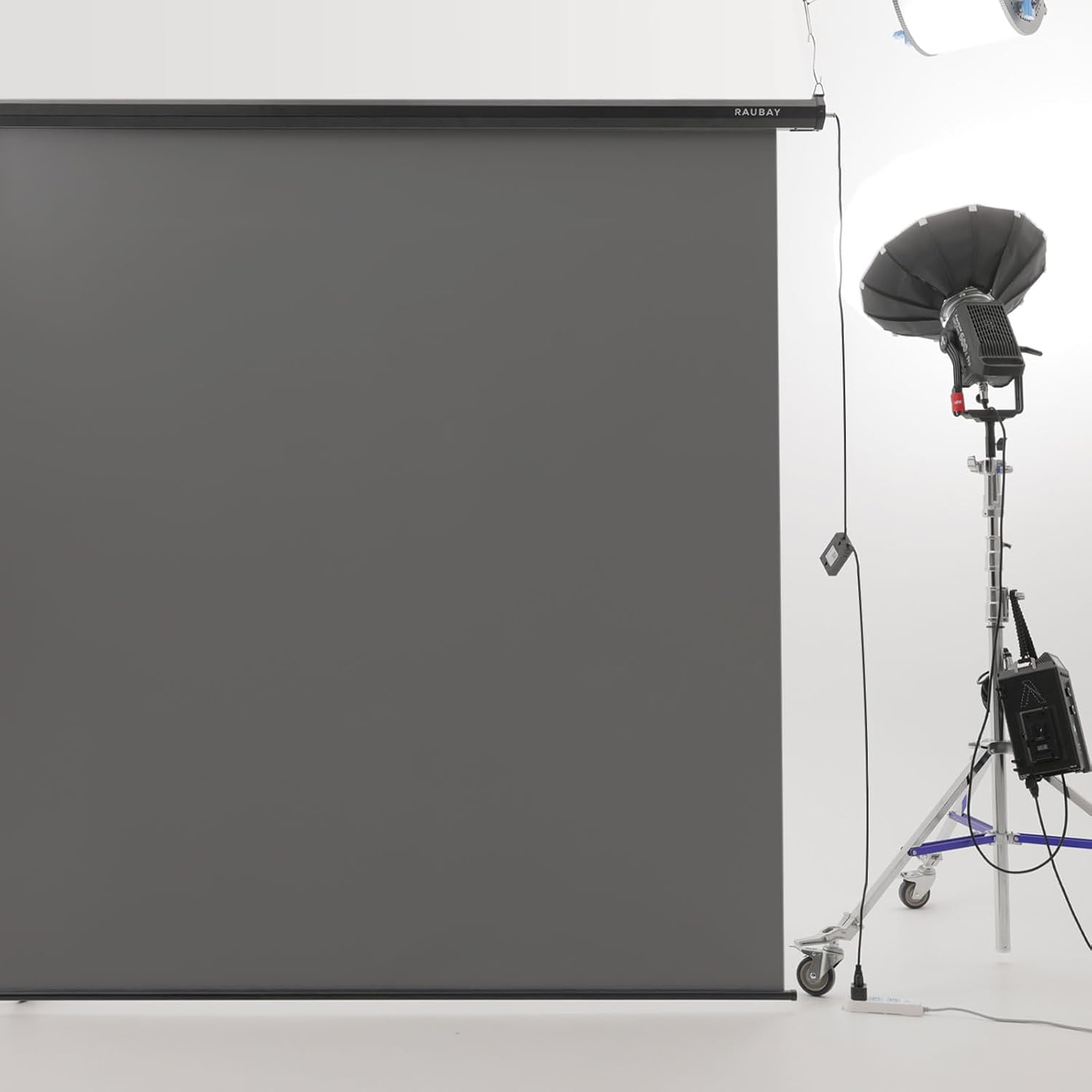 RAUBAY Motorized Pull Down Grey Screen Backdrop - 78.7" x 86.6" Collapsible Wall-Mount Background for Professional Video Production, Photography Studio, Video Conferencing and YouTube, TikTok Creator
