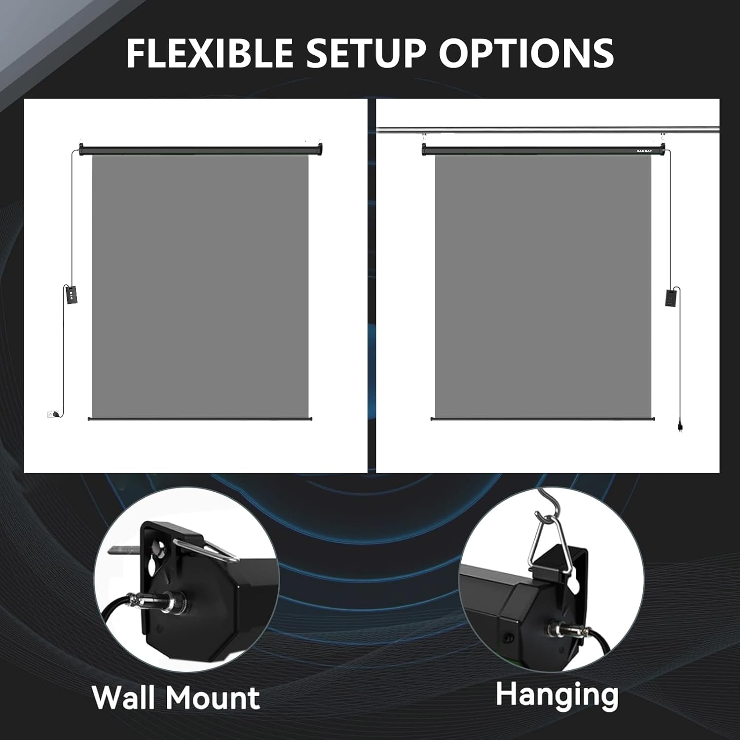 - đ©¶ăDual-Side Power DesignăDesigned for ultimate adaptability, our retractable pull-down green screen supports both wall and ceiling mounting. The durable metal housing features power cable ports on both sides, so you never have to worry about the outlet locationâmaximize your setup flexibility no matter how your space is arranged.