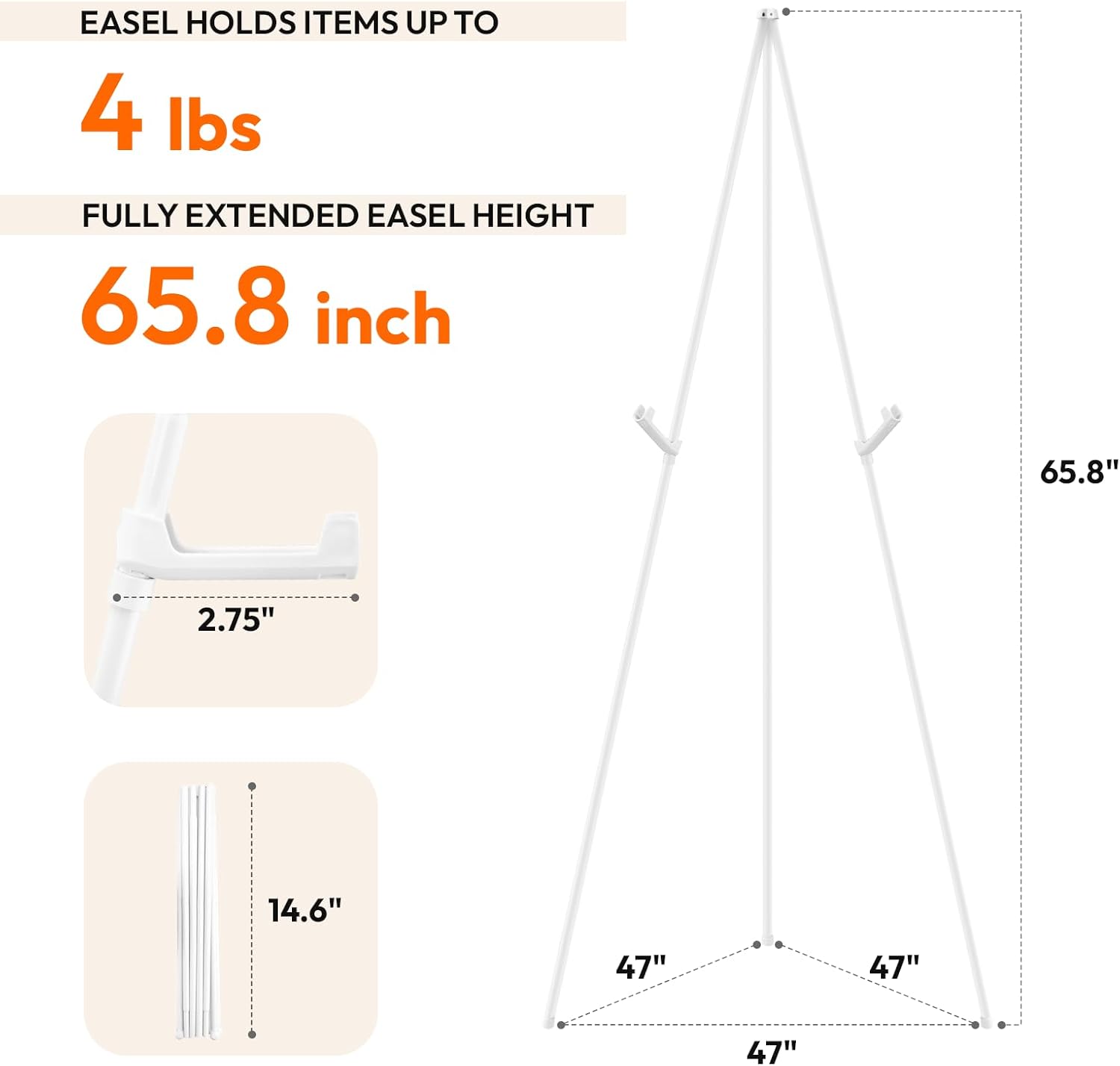 4PCS White Easel Stand for Wedding Sign Stand, 66 Inch Adjustable Metal Easels for Display, Portable Folding Easel for Wedding, Display Show, Arts, Poster with Portable Bags