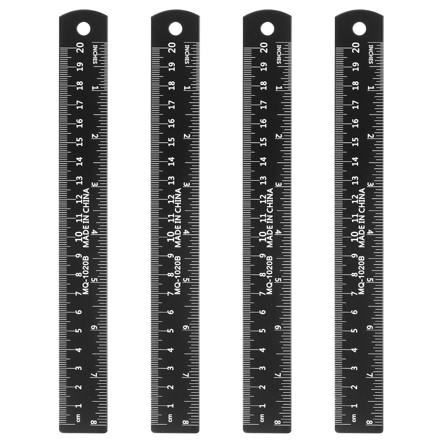 HARFINGTON 4pcs Metal Straight Ruler 20cm Metric SAE Aluminum Alloy Measuring Rulers Scale Tool with Hole for Measure Study Reading Classroom Office, Black