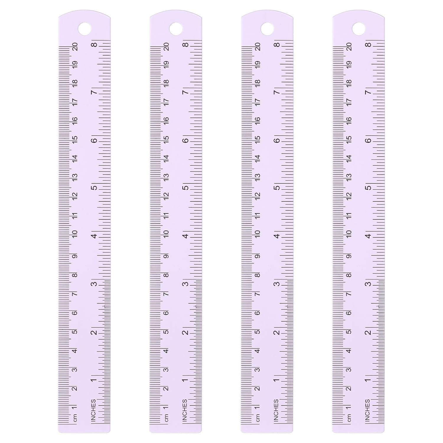 HARFINGTON 4pcs Metal Straight Ruler 20cm Metric SAE Aluminum Alloy Measuring Rulers Scale Tool with Hole for Measure Study Reading Classroom Office, Purple